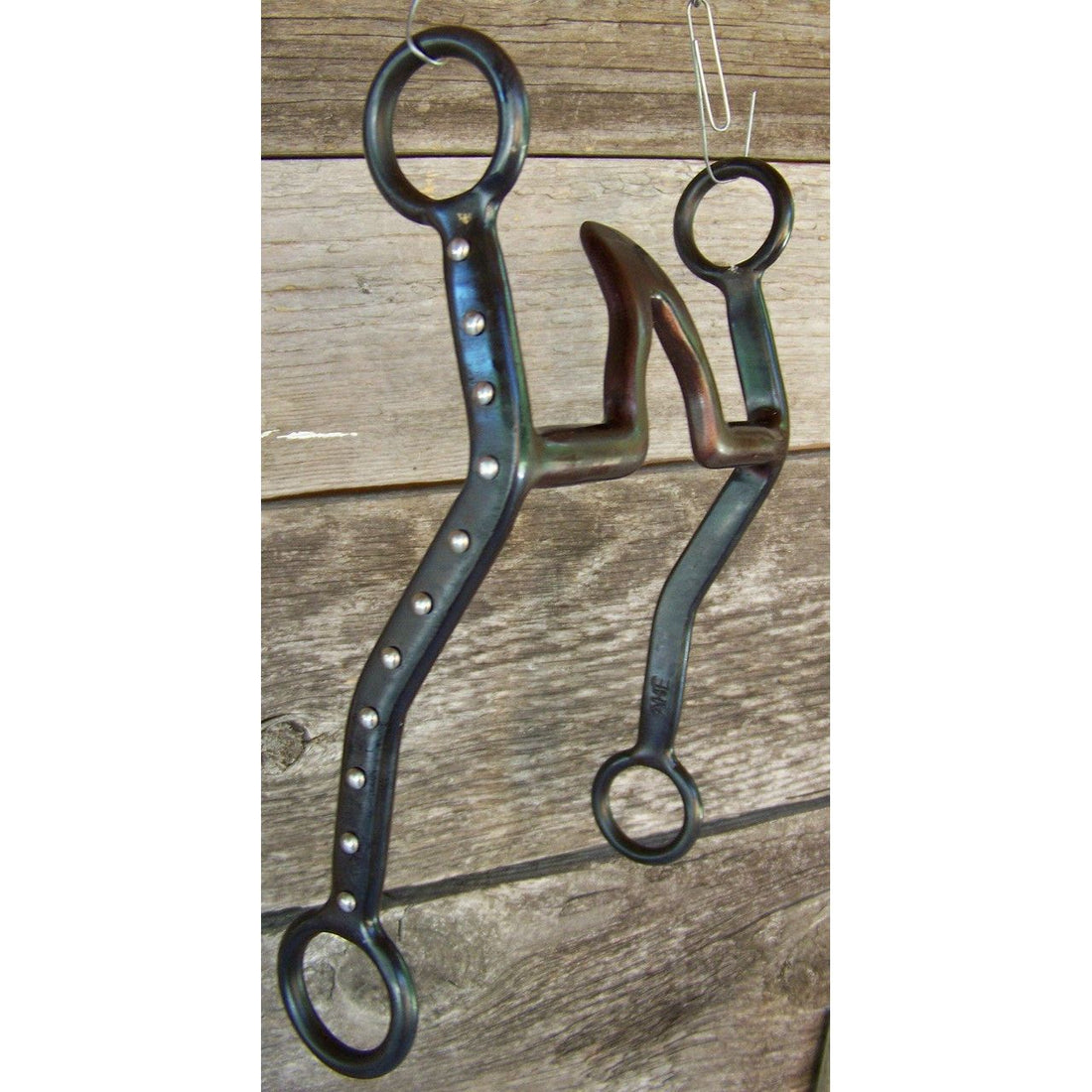 This antique bit features 8" engraved loose cheeks and a cathedral mouth with copper barrels...