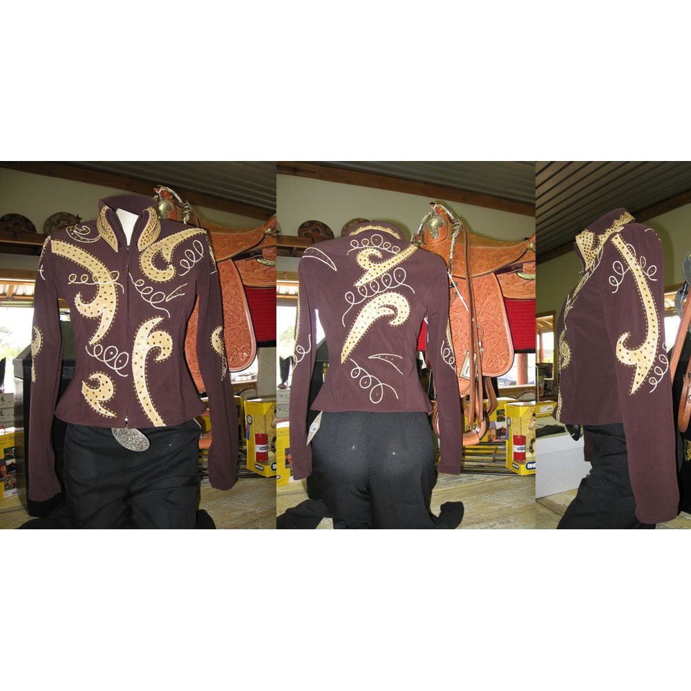 Size MediumDesigns by Batya - Great horsemanship jacket in chocolate with camel accents. White/Gold rope,...