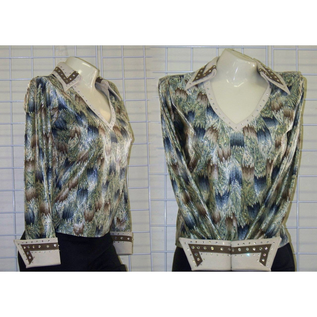 Custom Horsemanship Show Shirt - Sage/Tans - Size XS