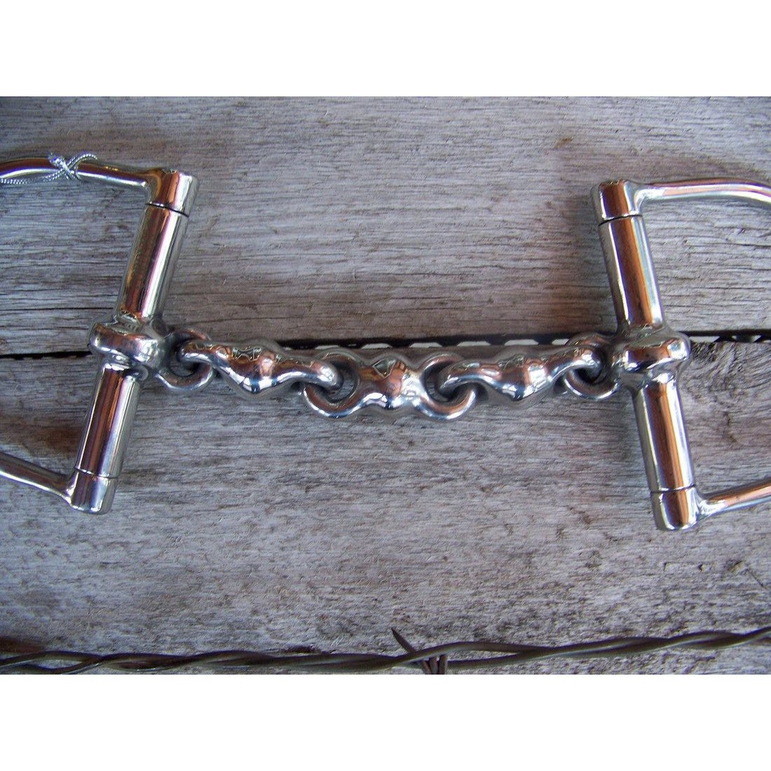 Stainless steel large dee bit has a 5.0 inch mouth with a waterford mouth piece.