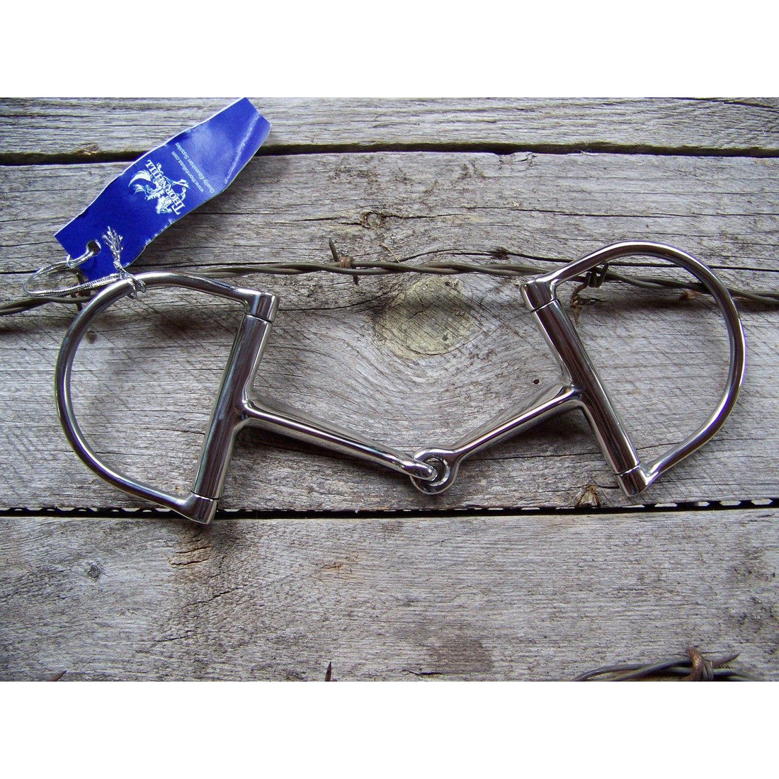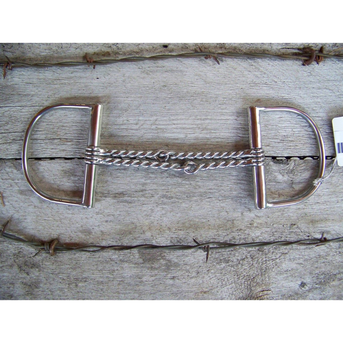 Large dee stainless steel snaffle measures 5 1/2 inches and has a twisted bent wire...
