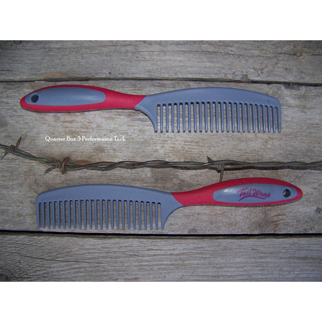 TailWrap ergonomical tail and mane comb in raspberry and grey.