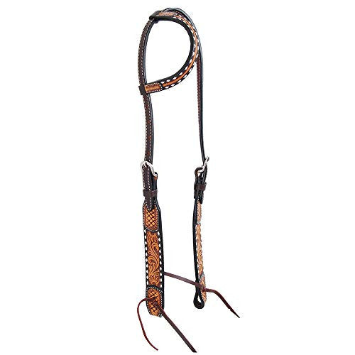 Single Ear Headstall with Floral and Sunflower Tooling.