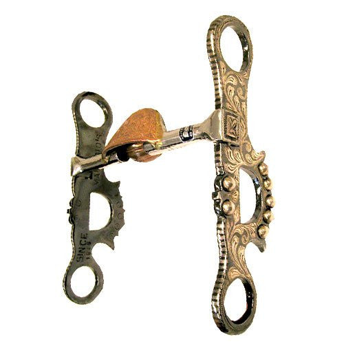 Antique brown bit with 5" high port mouth with copper inlay and copper roller. 7...
