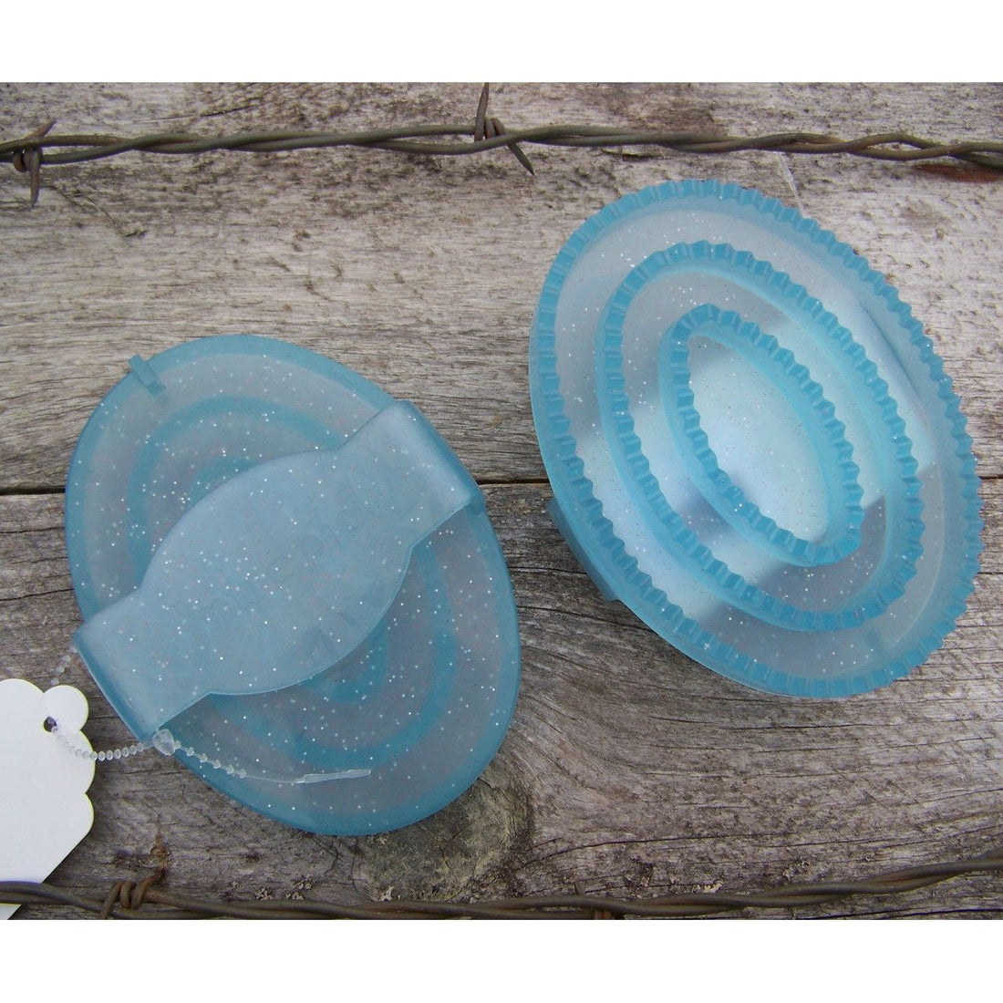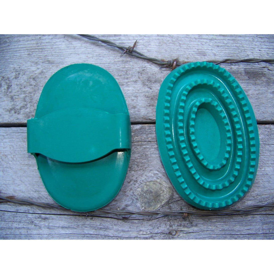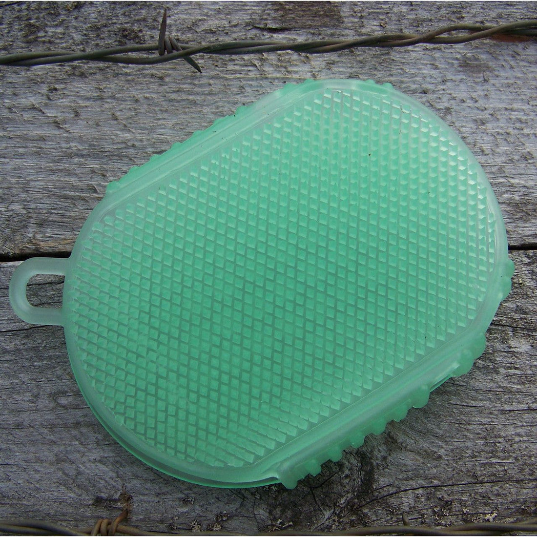 Massage groomer with nubs to remove caked mud. Stimulates and soothes the skin. Handle makes...