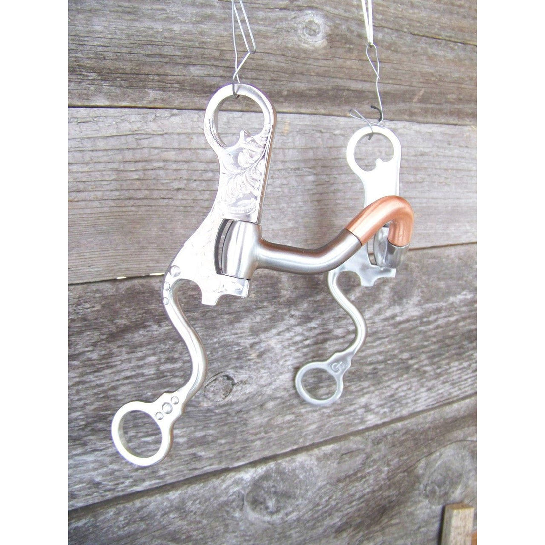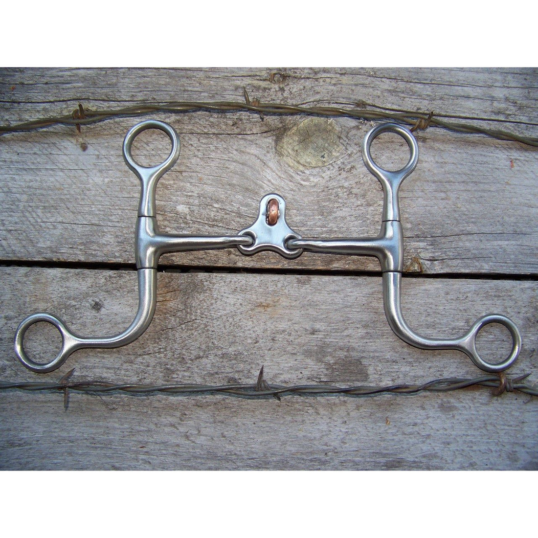 Stainless steel breaking bit with a 5" copper snaffle mouth and 6" cheeks.