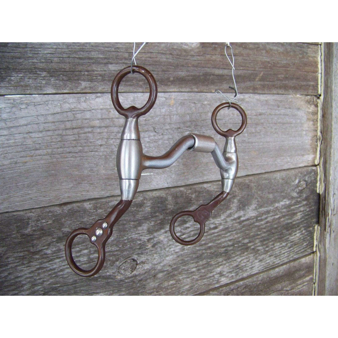 Brushed stainless steel floating spoon bit. 5" sweet iron 3 piece mouth with coper ring....