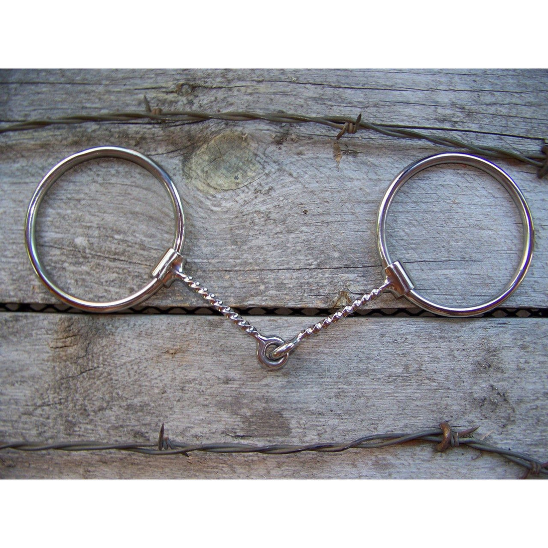 Stainles steel ring bit with 5" thin square twisted wire snaffle mouth. 2 3/4" diameter...