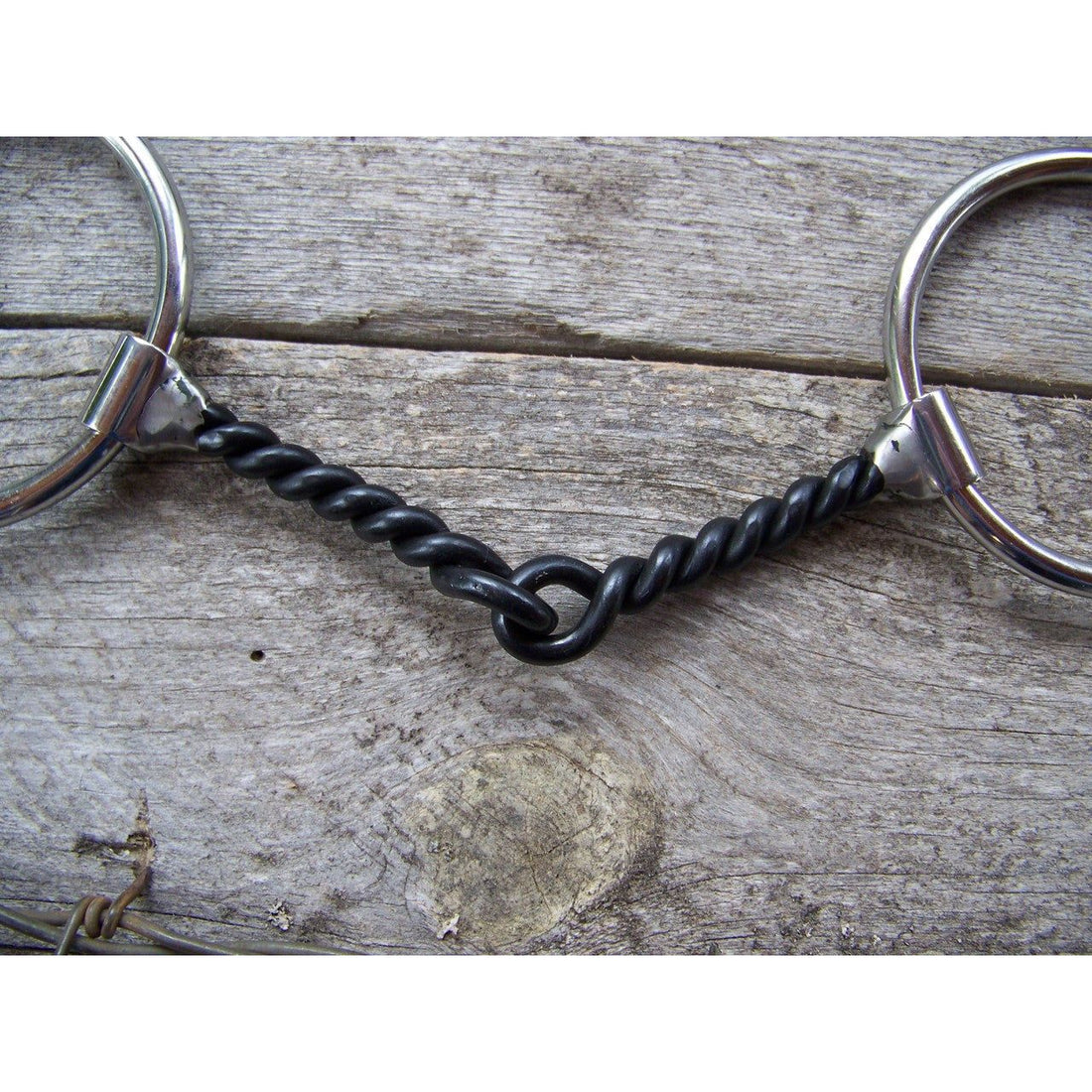 Black steel ring bit. 5" smooth and squre slow twist Snaffle Mouth. 3" Diameter rings....