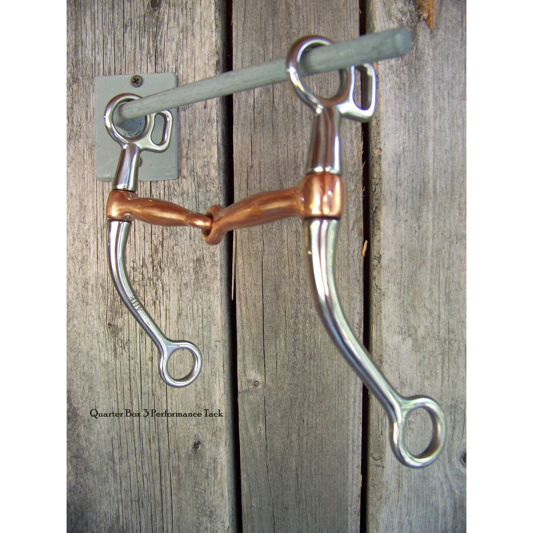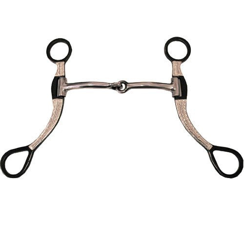 Stainless steel training bit with 5" copper snaffle mouth.  6 1/2" cheeks.