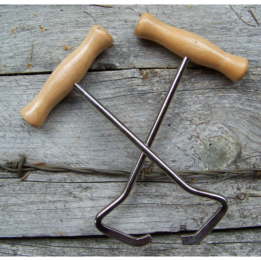Pair of boot hook pulls with plastic handles. Great for putting on your English boots...