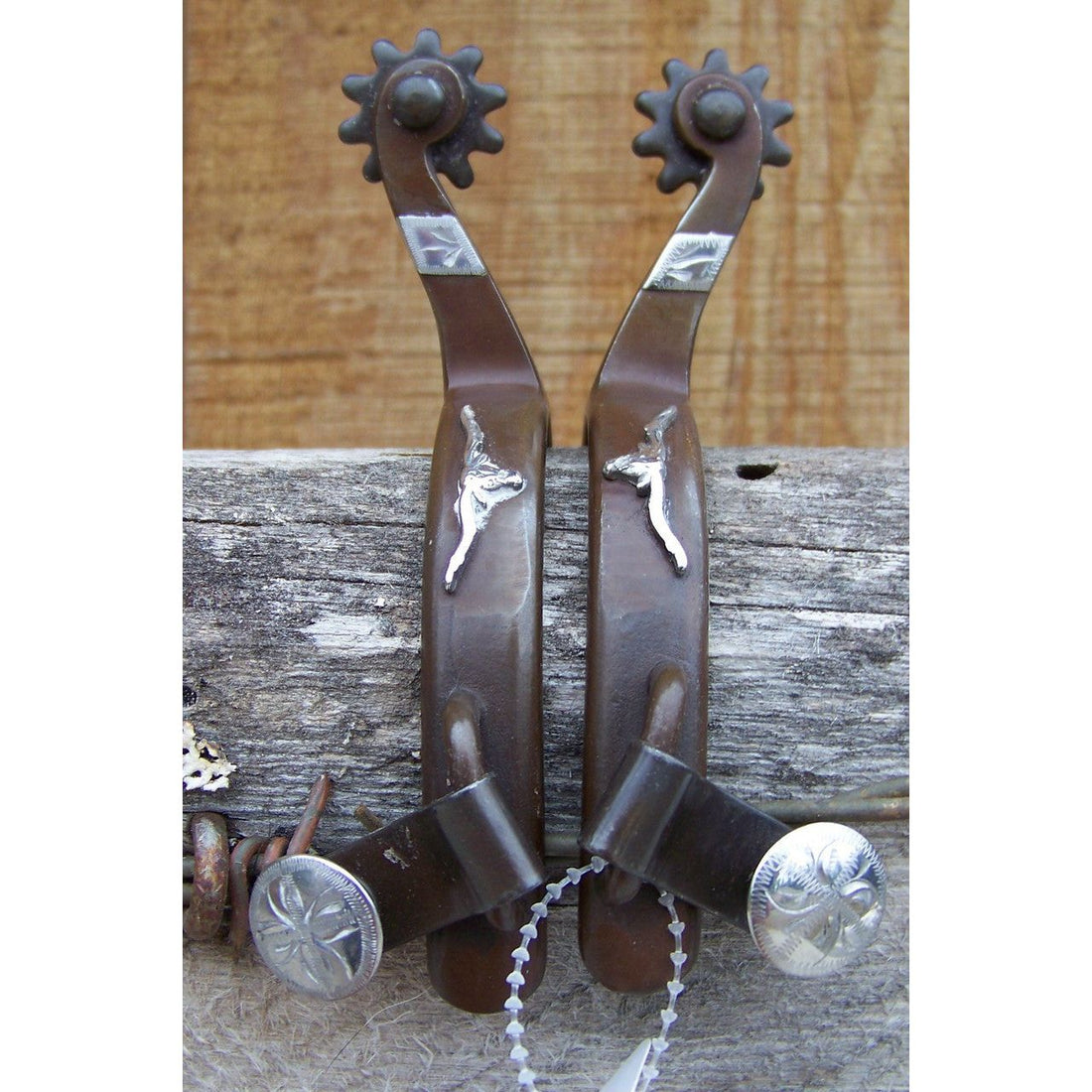Antique Spur, Youth Longhorn Motif Engraved Trim, 10-Point Rowel (Moderate Effect)