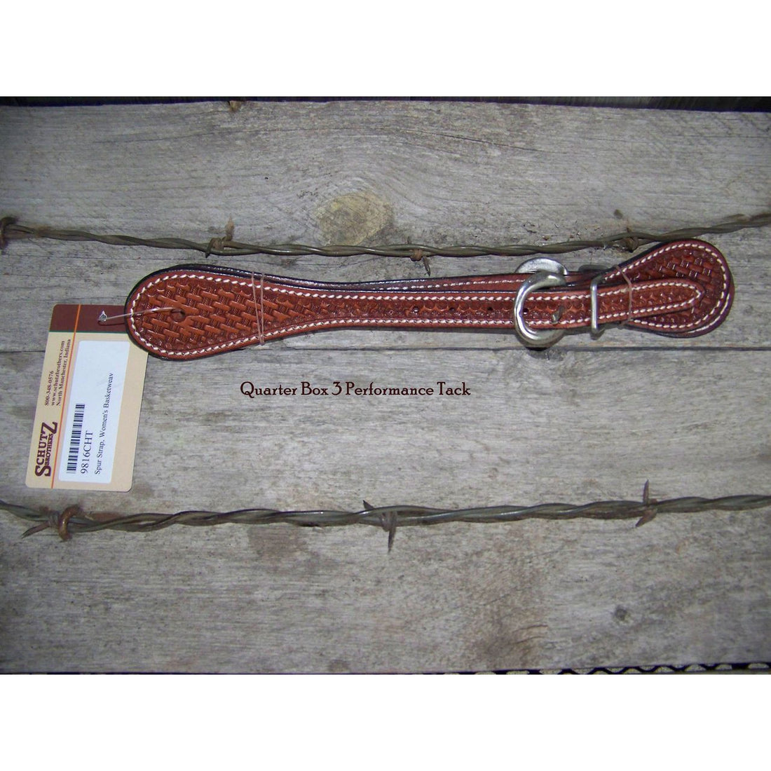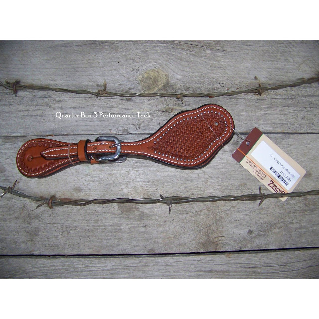 Basketweave tooled single-ply, stitched spur straps accented with a border of mini-spots. Available in natural...