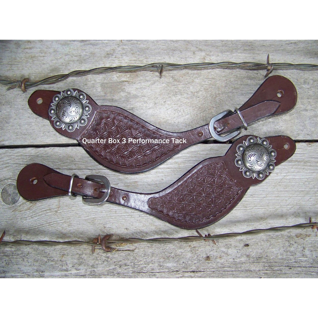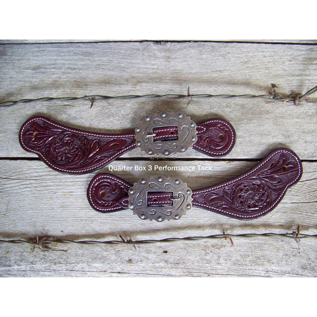 Western Leather Spur Straps - Hand stamped floral design with beautiful ornate buckle and concho....