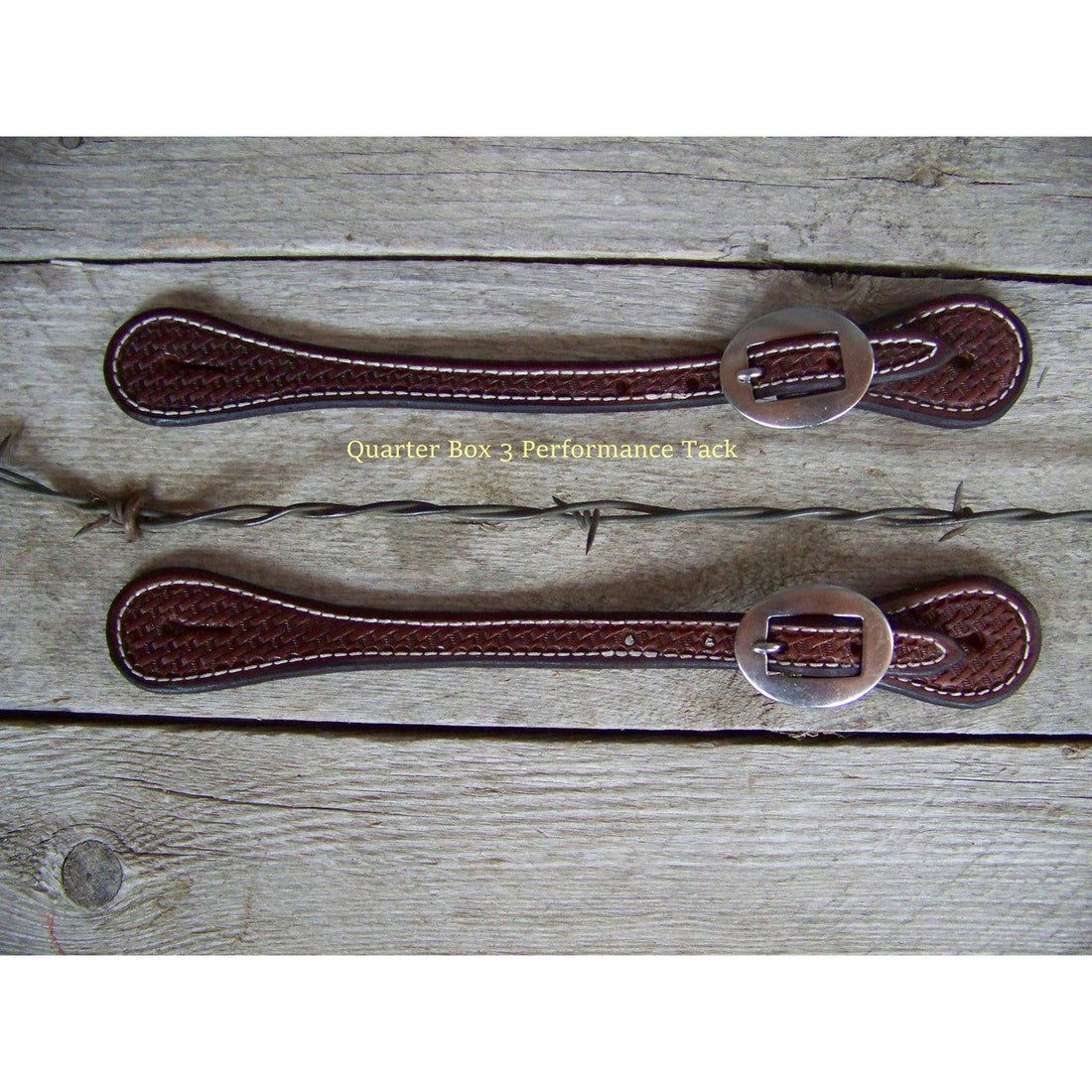 OiledMen's wide basket weave stamped spur straps feature rawhide arrow braiding. Spur straps are lined...