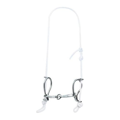 Black satin sliding gag bit with 5 1/4" sweet iron snaffle mouth. White polypropylene cord...