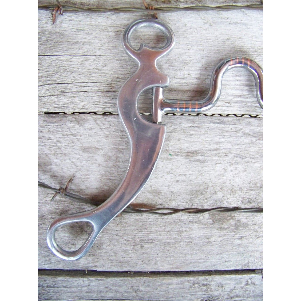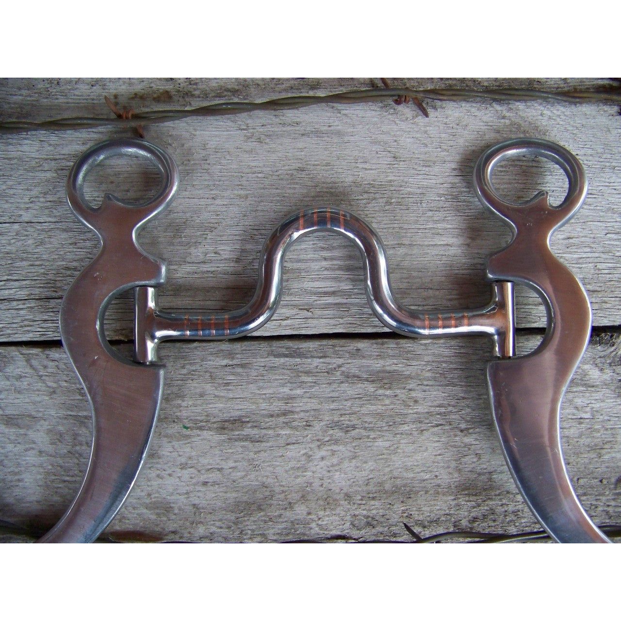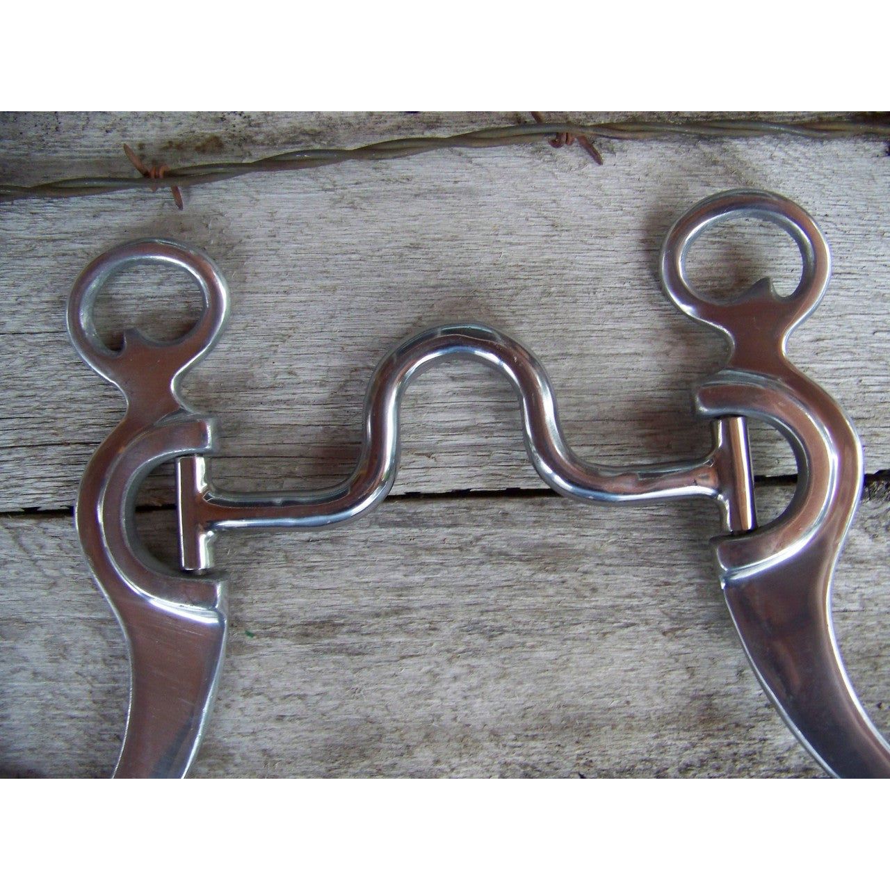 Aluminum bit features 5" steel iron high port mouth. 8 1/4" aluminum cheeks are for the aged, intermediate, experienced horse. (Moderate to Strong Effect)