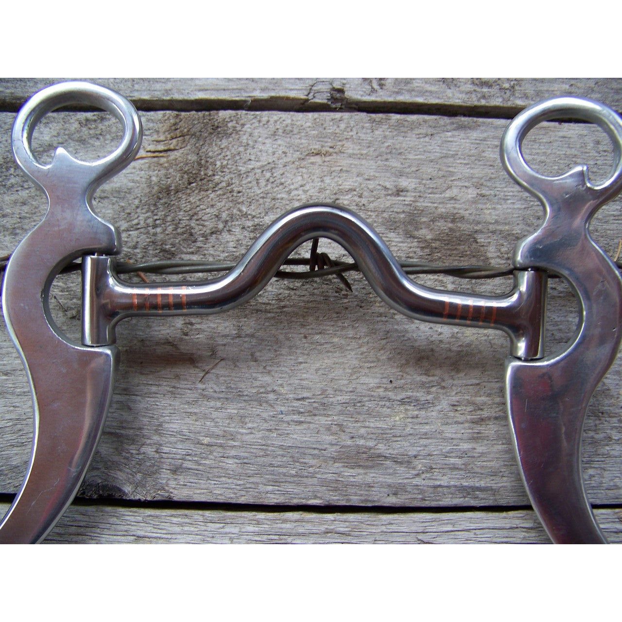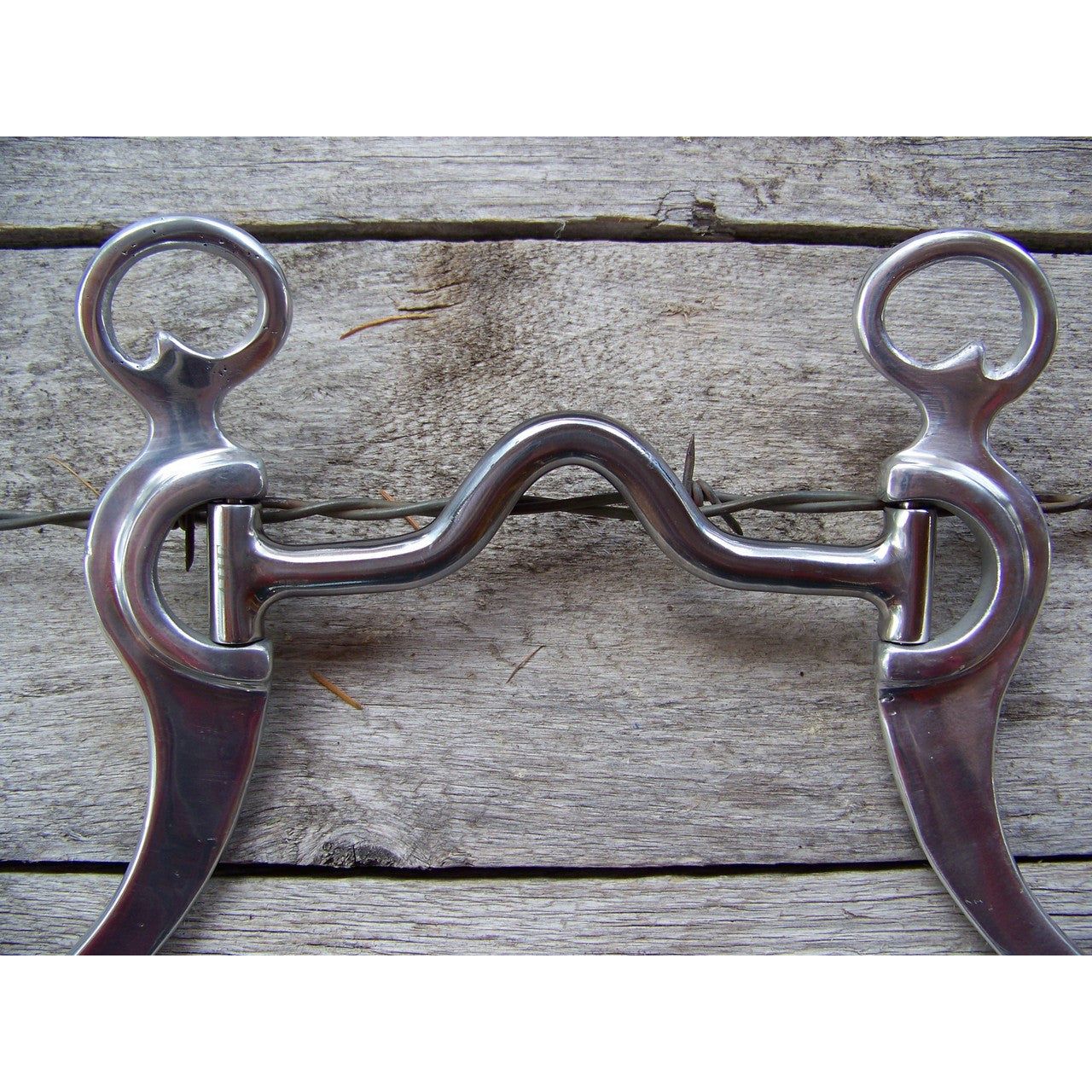 Aluminum Training Bit - 5" sweet iron medium port with 8 1/4" cheek. These bits closely resemble the Partrade bits but the finishing work is just slightly rougher (edges not as buffed out and polished as the Partrade). The price reflects the difference as I stock both brands.