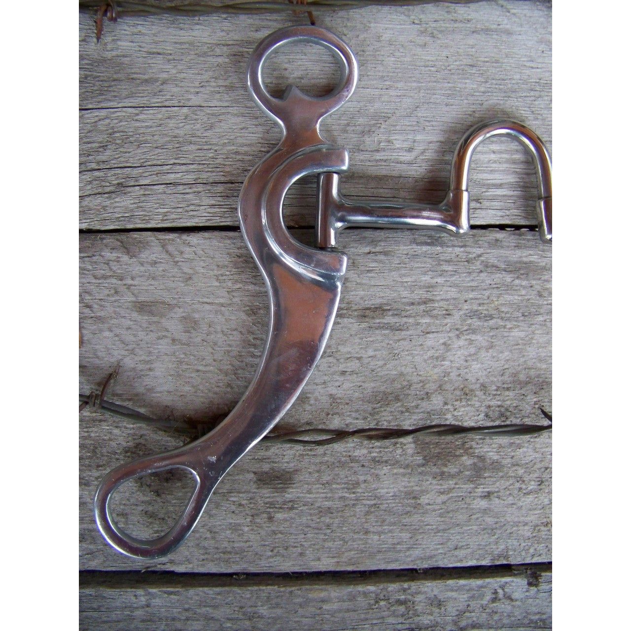 Aluminum bit the a 5" stainless steel correction mouth piece. Copper inlay to promote salivation. 8 1/4" aluminum cheeks. Best for aged intermediate expereienced horse. Bit provides a moderate to strong effect.