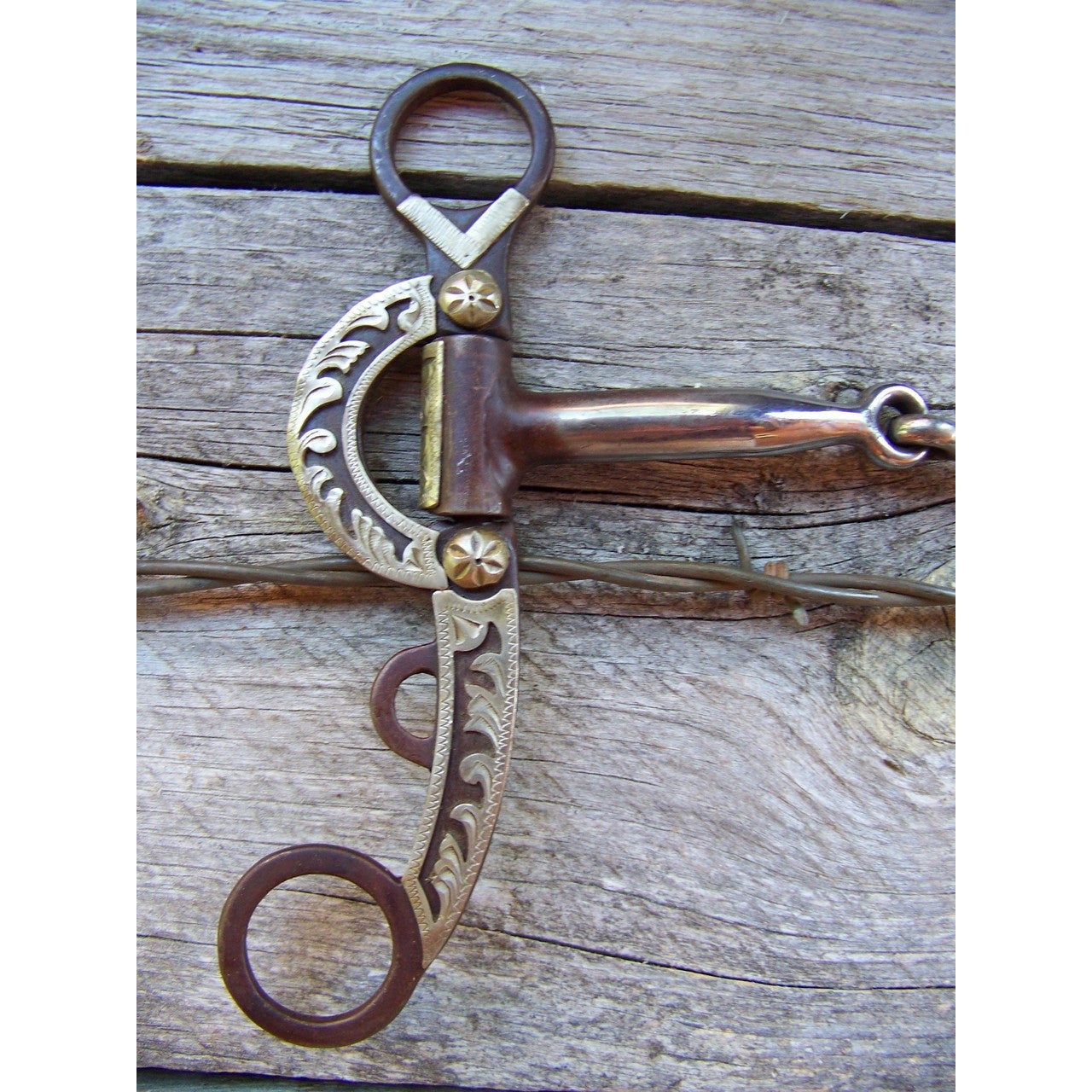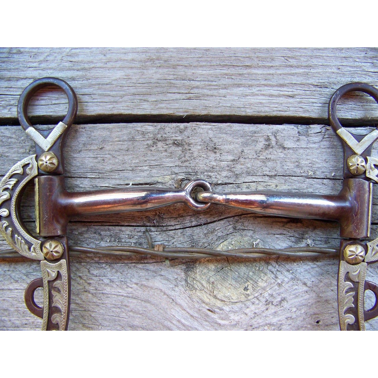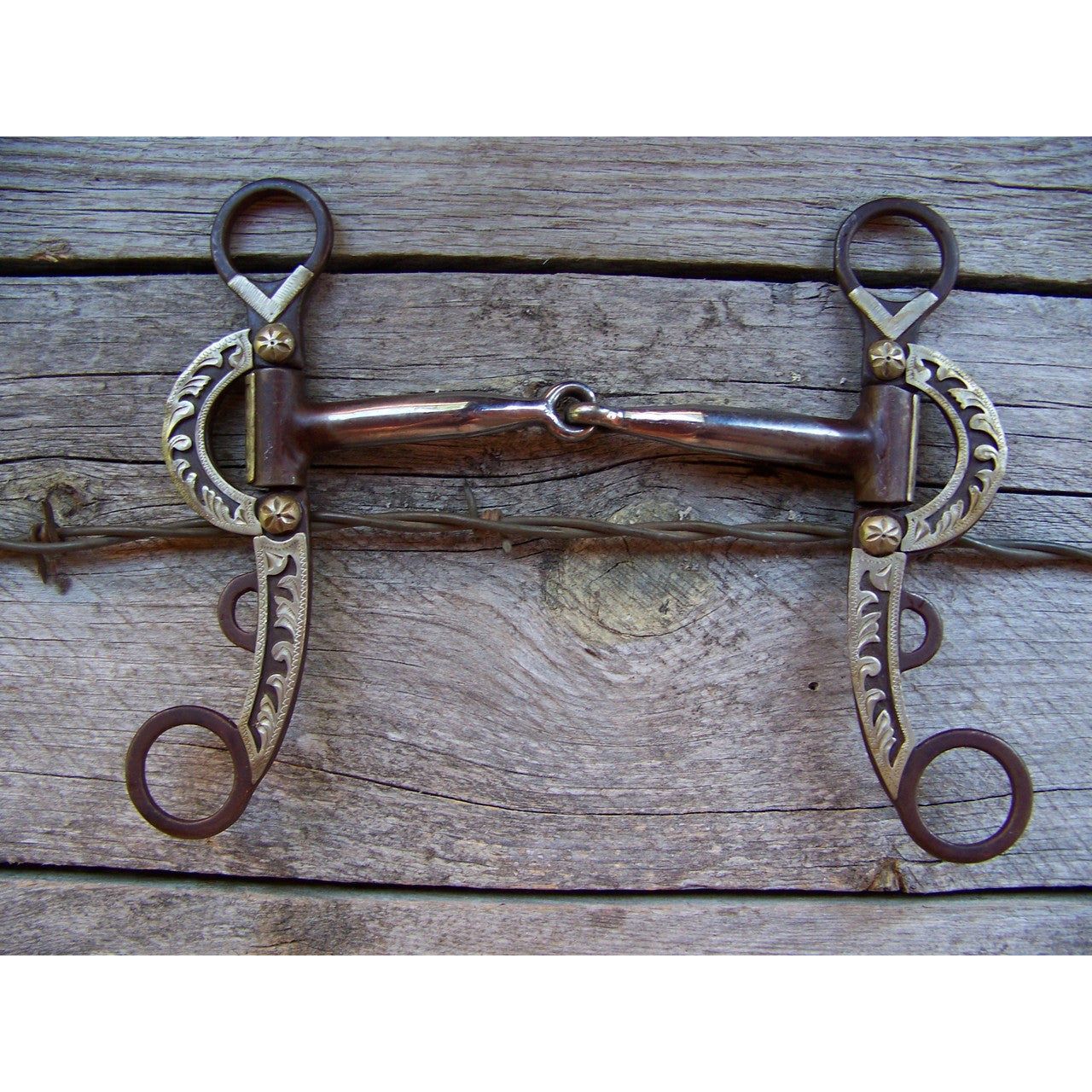 Bit - Antique Brown Snaffle with Floral Engraved Sides
