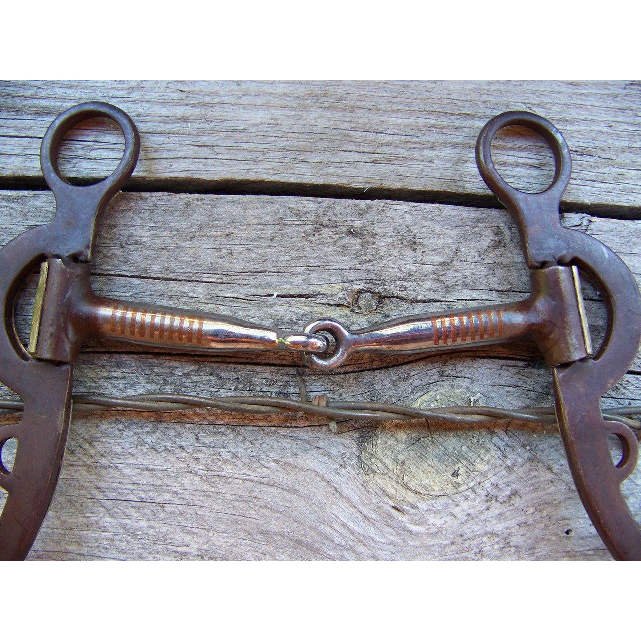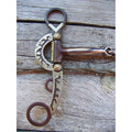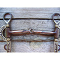 Antique brown bit with 5" snaffle mouth. 6 1/8" cheek with german silver trim.