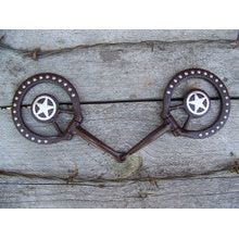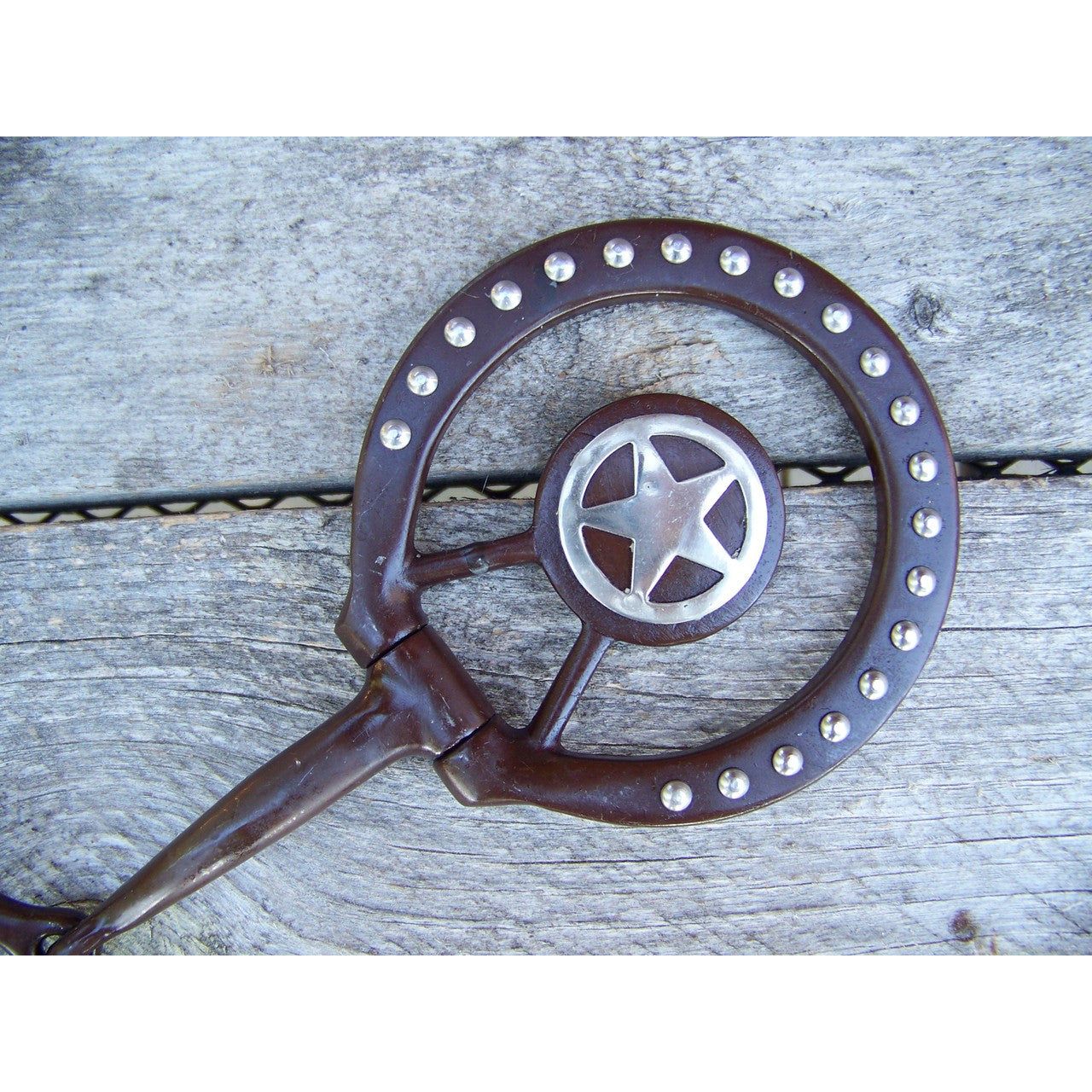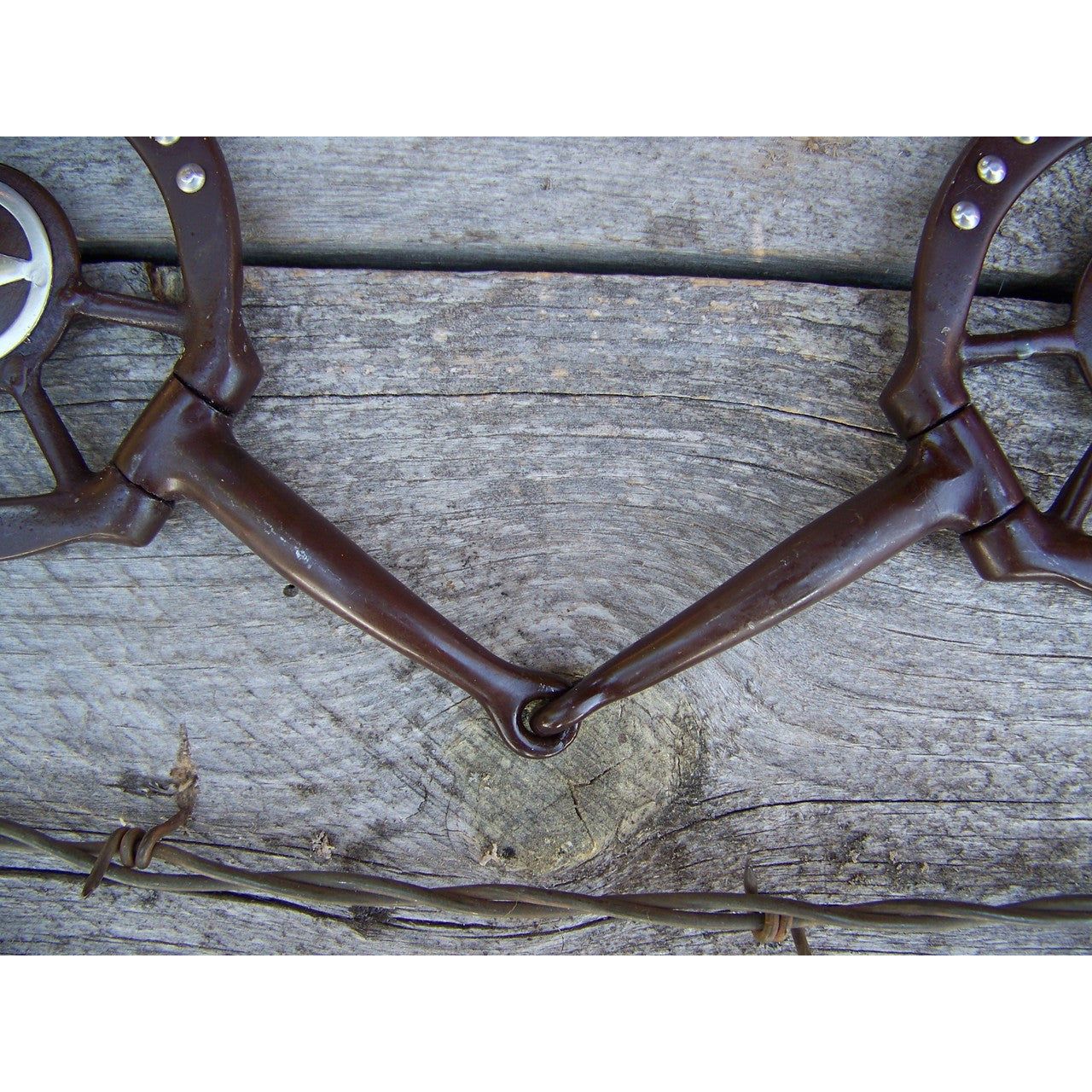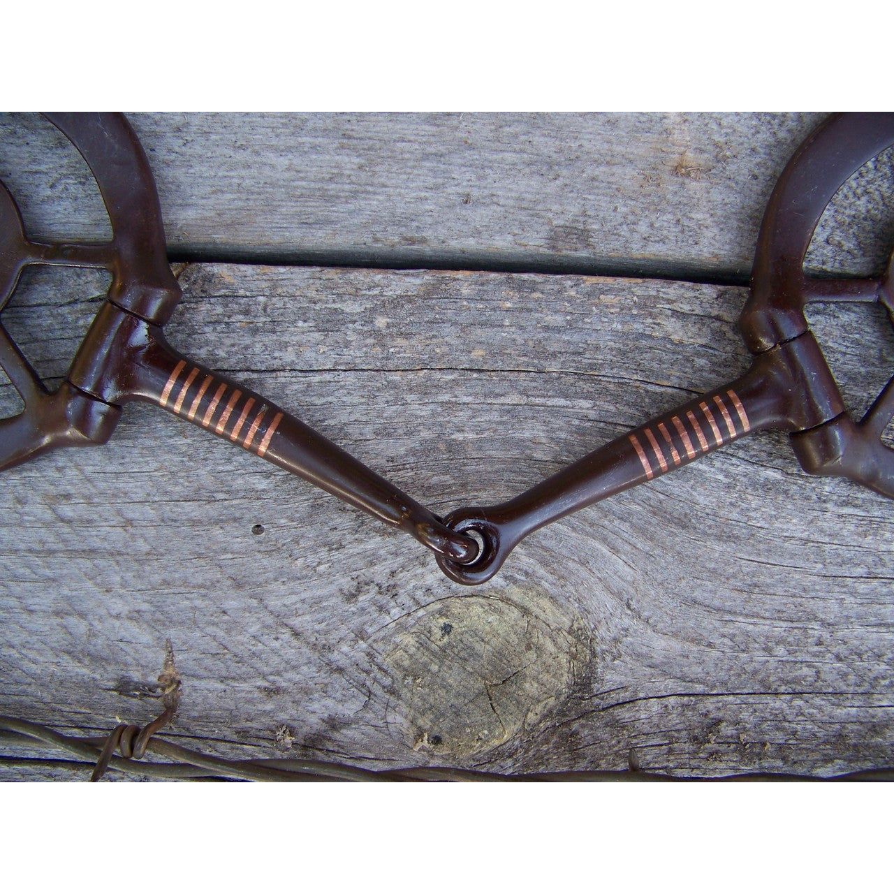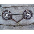 Antique Brown Dee Bit, 5-1/4" Snaffle Mouth, 3" Diameter Rings W/Stainless Steel Dots and German Silver Ranger Star Conchos