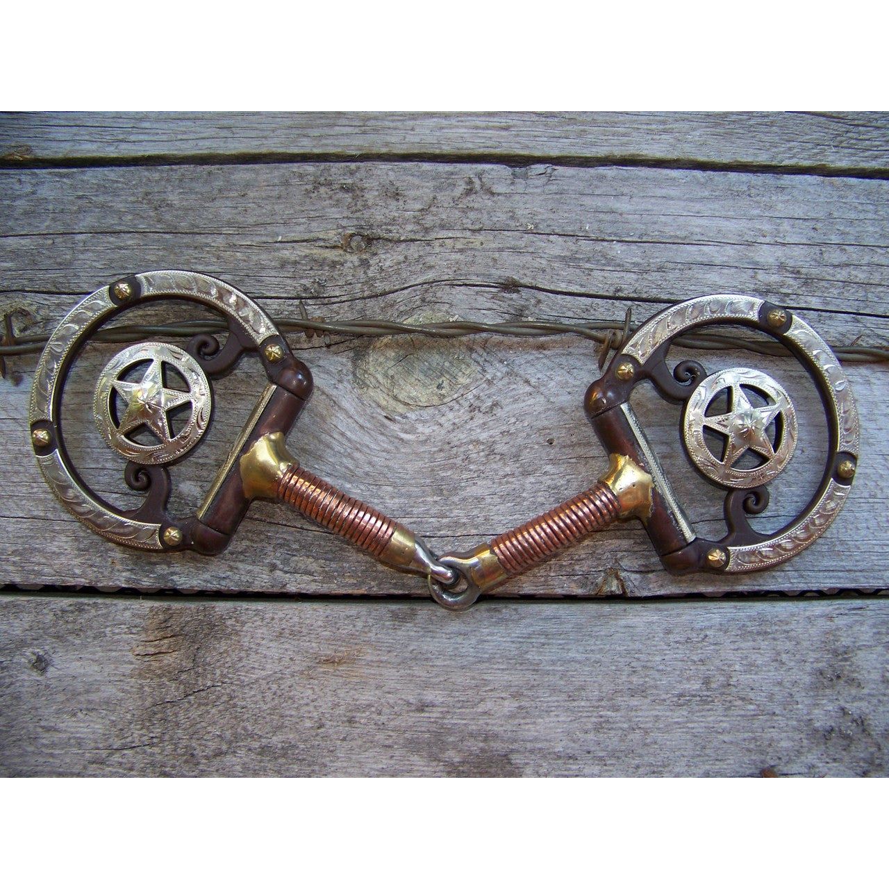 Bit - Antique Dee with Engraved Trim, Star, Copper Wrapped Bars