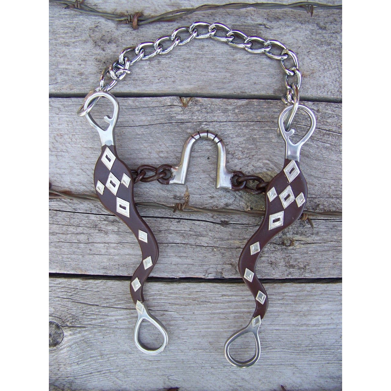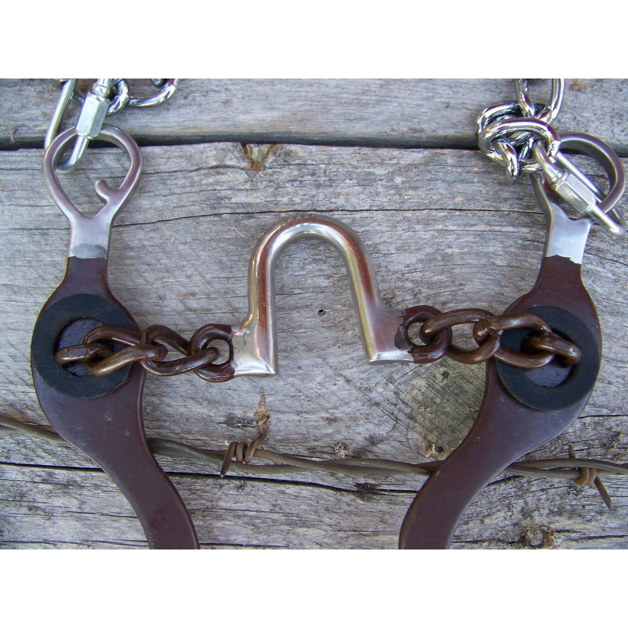 Antique Brown Roping Bit, High Port Correction Mouth W/Copper Inlay. Stainless steel curb and quick link included.