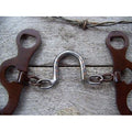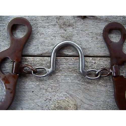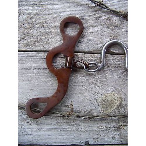 Cute antique bit with german silver engraving on the side. Tear drop shanks. Very mild low port.