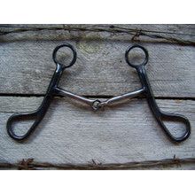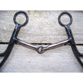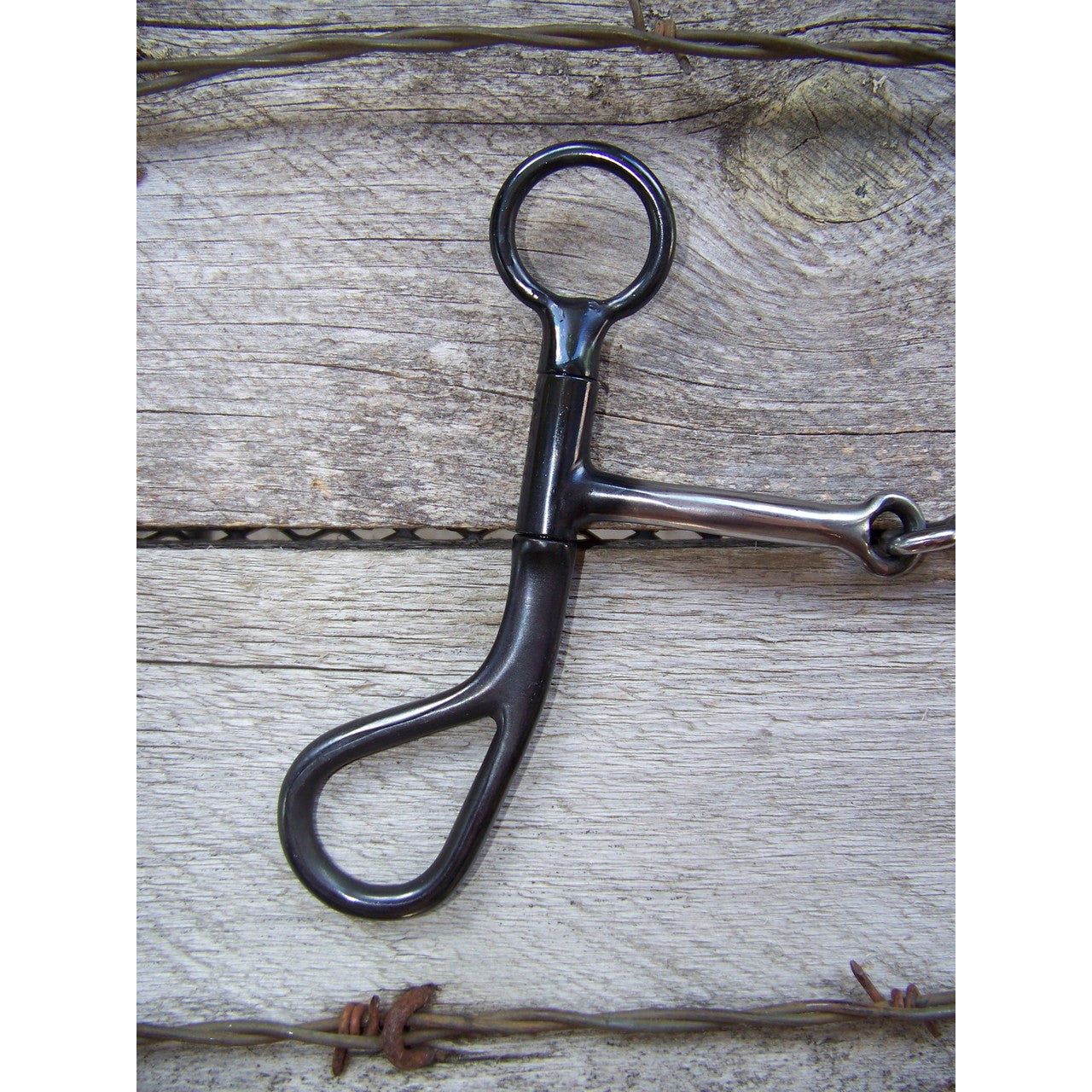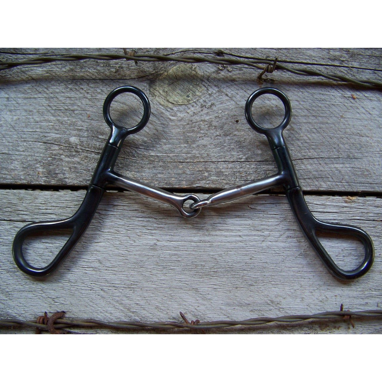 Black satin steel bit, 5" snaffle mouth. Cheeks are 6".