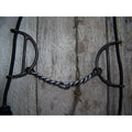 Black satin gag bit comes with a 5 1/4" sweet iron twisted wire mouth. Black poly gag headstall is also included. For the intermediate horse. Provides a strong to very strong effect.