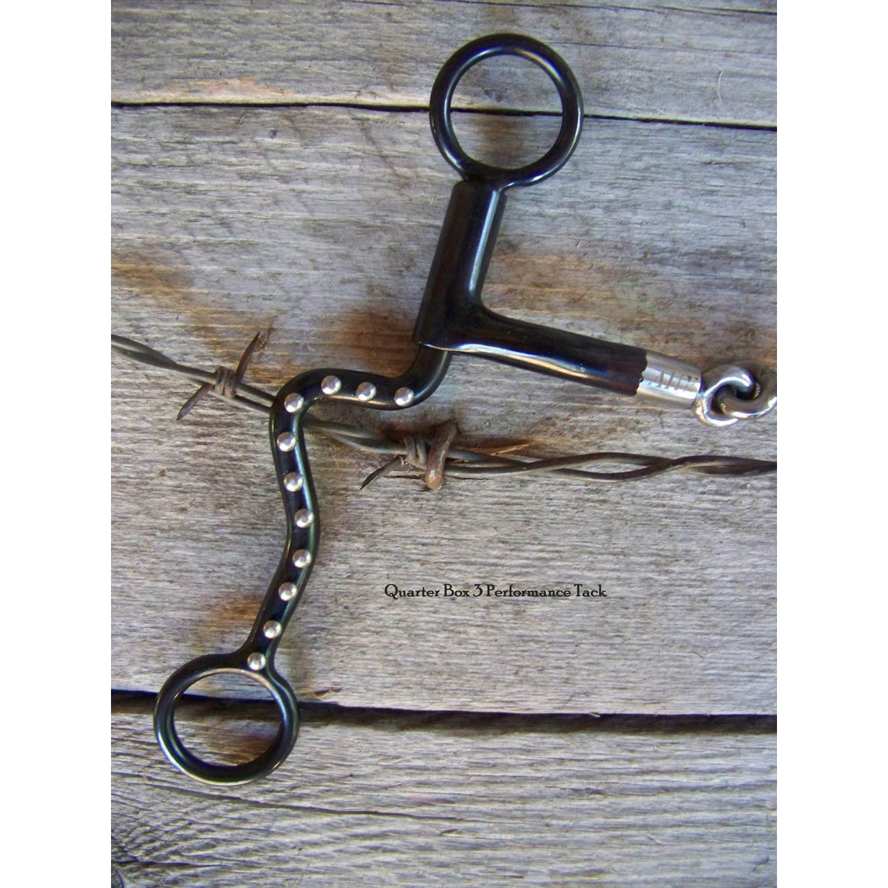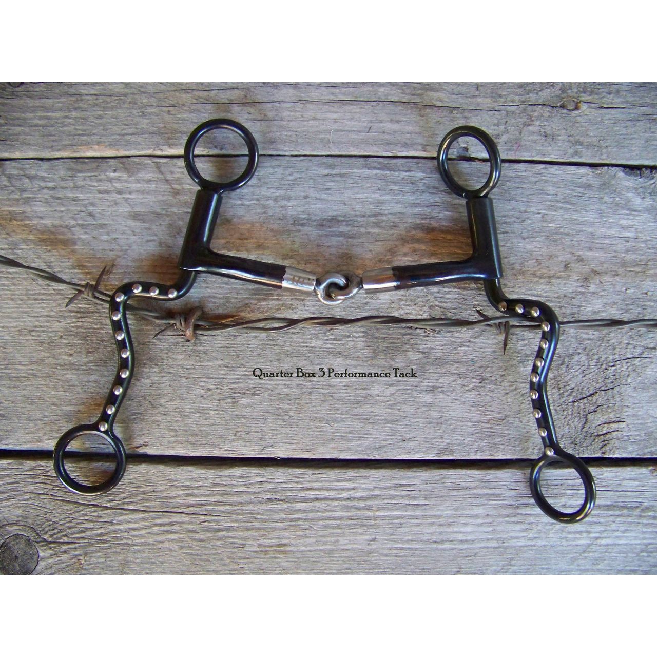 Black Satin Twisted Wire Snaffle with Slight Gag action. Stainless Steel Dots.