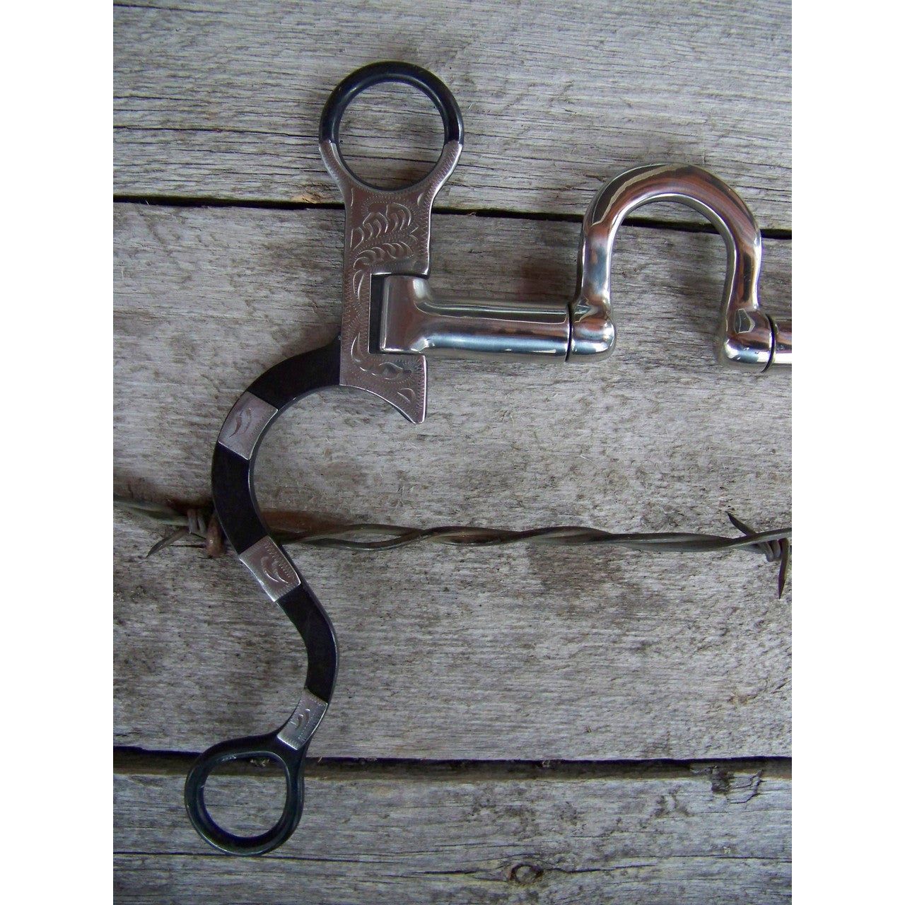 Black satin prcision bit has a 5" stainless steel spoon mouth. The 8" black steel cheeks accent engraved trim. This bit is designed for the experienced horse. Bit is great for allowing more shoulder control. Produces a strong effect.