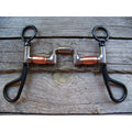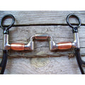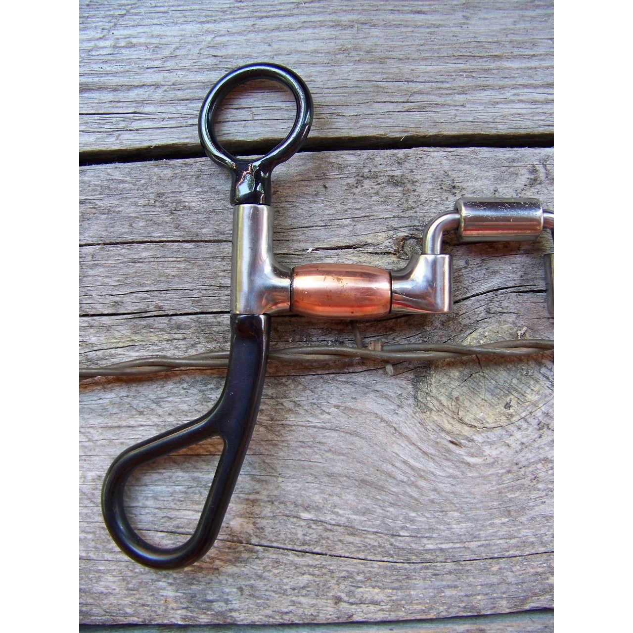 Black steel bit with hinged articulated port. Stainless steel roller on top of port and copper rollers on bars.