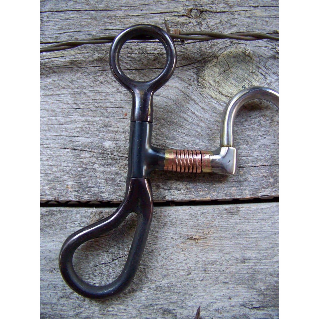 Black steel colt bit with 5" copper wire wrap correction mouth. Cheeks are 6".