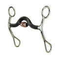 Good low leverage shank. Excellent balance. Copper roller works well with horses that like to play with the bit. Also adds some mild pressure to help break a horse over at the poll for better headset and control. Sweet iron increases salivation for a supple feeling mouth. Copper is a soft metal, watch for excessive wear.