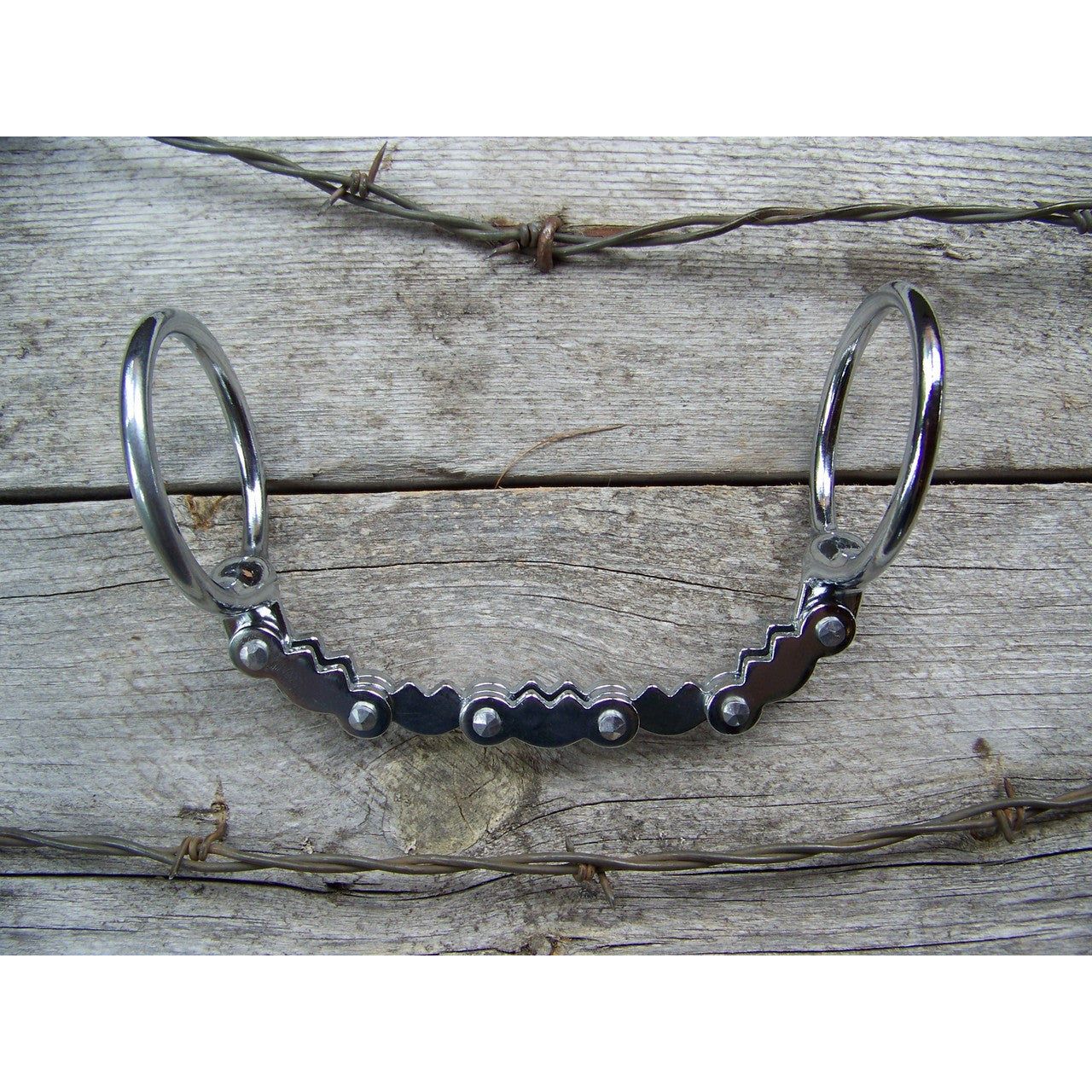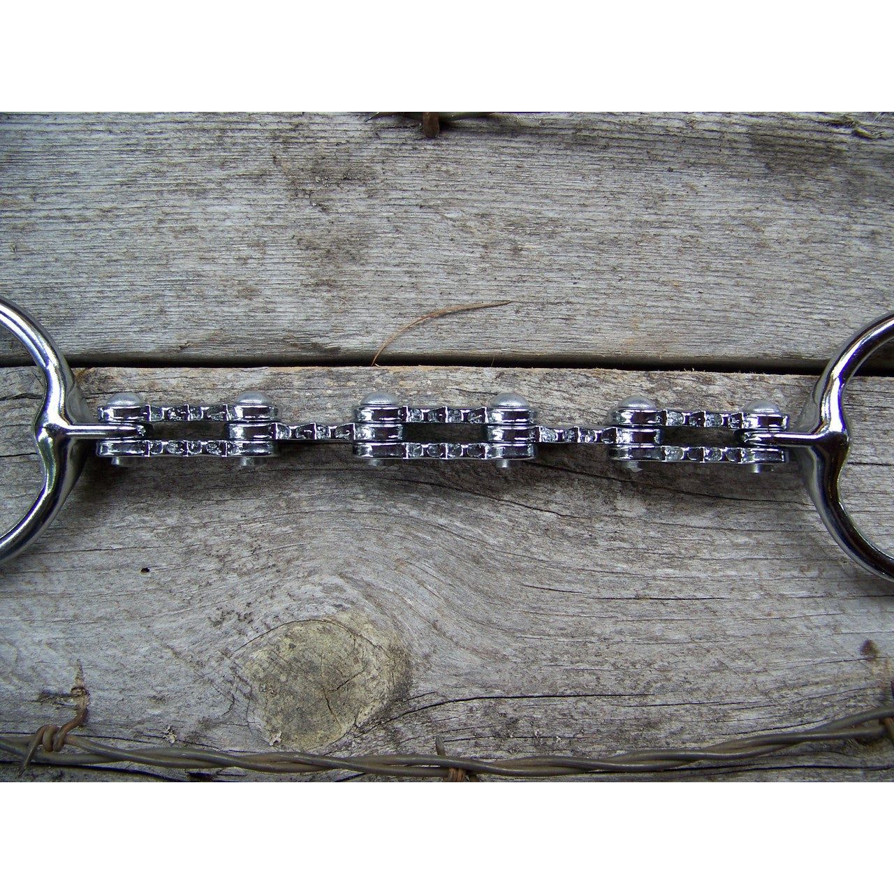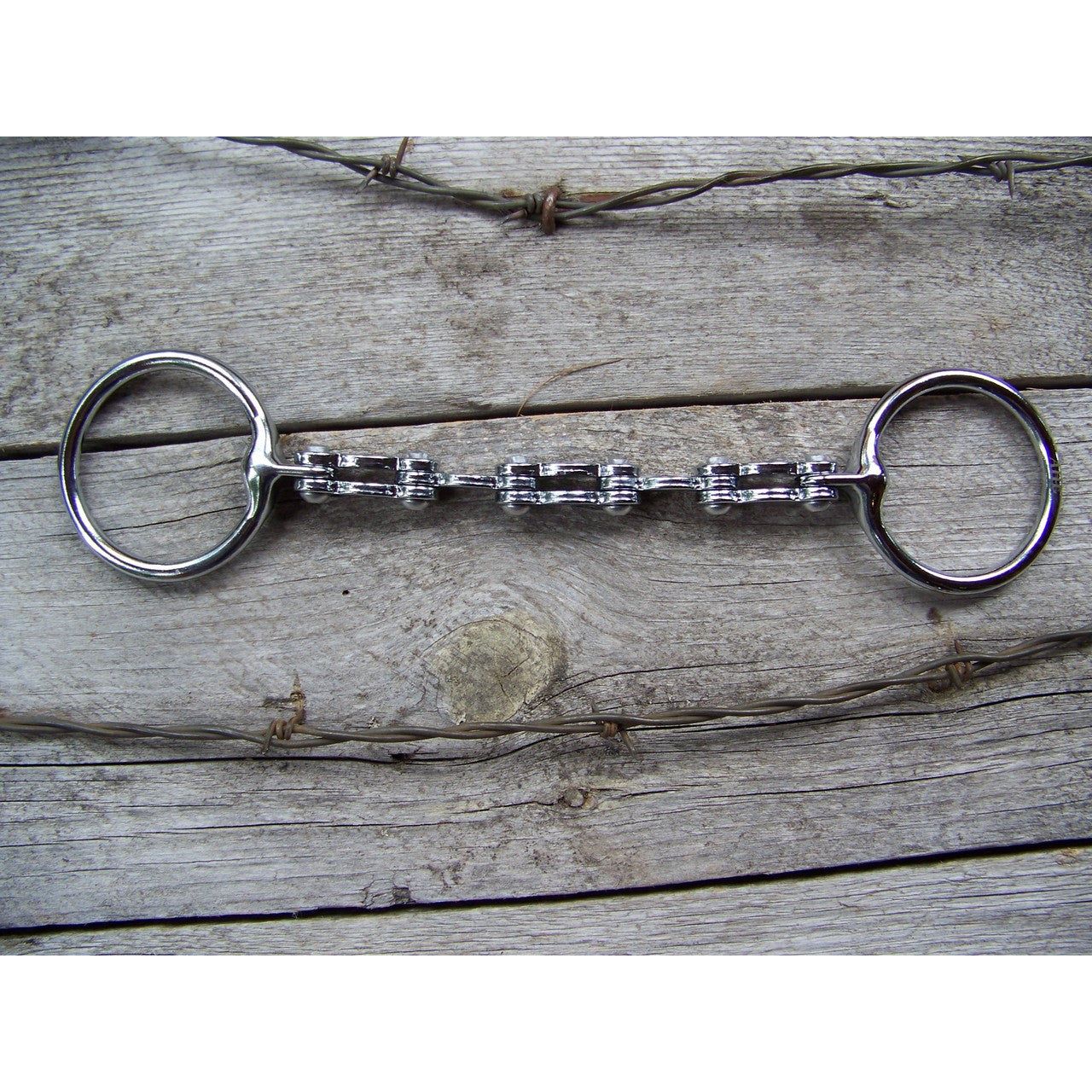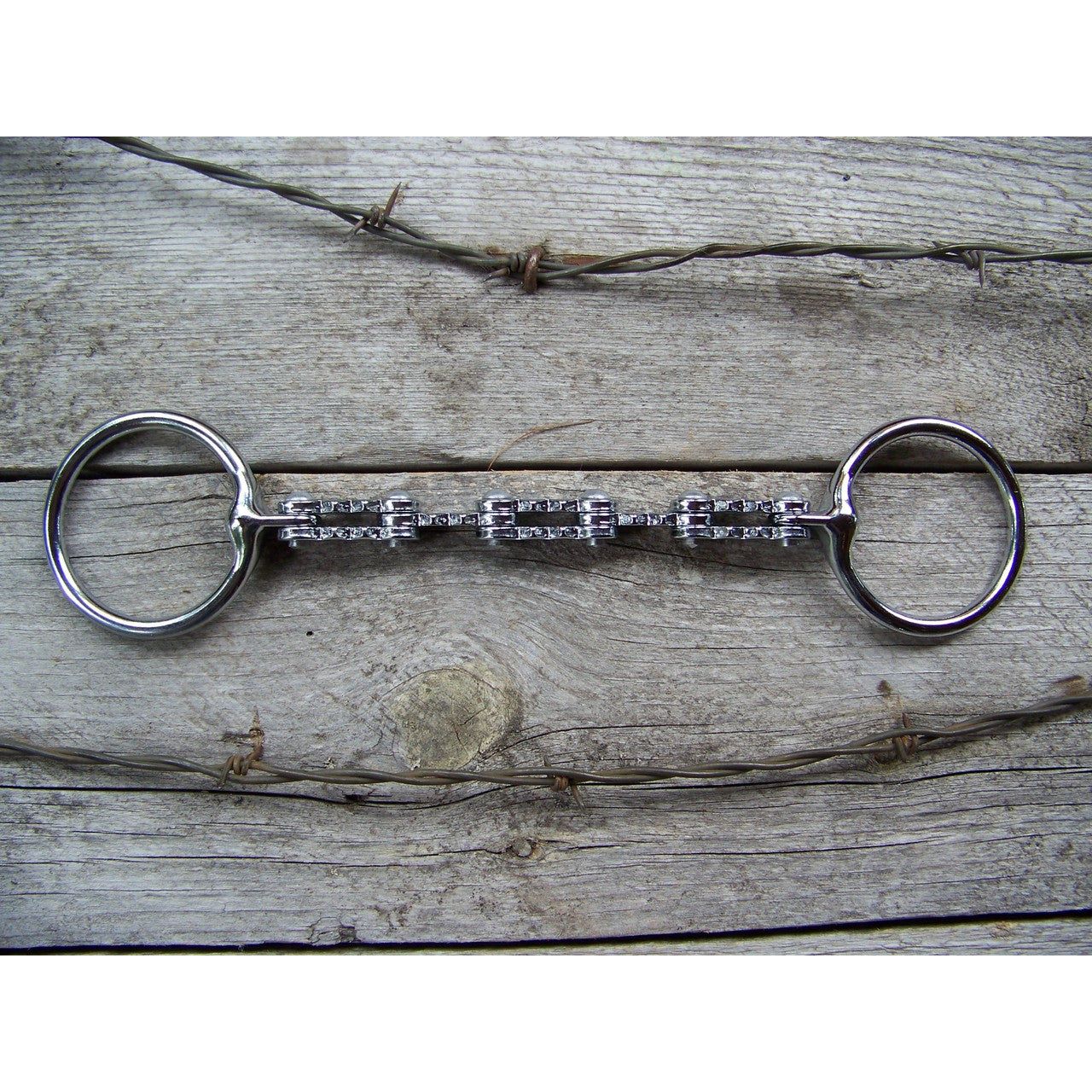 Saw chain mouth is on a chrome plated ring bit. NOTE - chrome plated bits will eventually rust when the chrome comes off! This is the difference in price between a stainless steel bit and a chrome plated bit. You get what you pay for! Mouth measure 6 1/2". Rings are 2 1/2" in diameter.