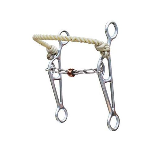 Has definite lifting action as well as external noseband pressure to increase laterals. The snaffle is made of 3/8" sweet iron material. The mouthpiece is a four-break chain with a center link interrupting the continual pressure across the mouth. This allows for more intensity on the outside pressure points. The copper center loose rollers aid in keeping the mouth moist.