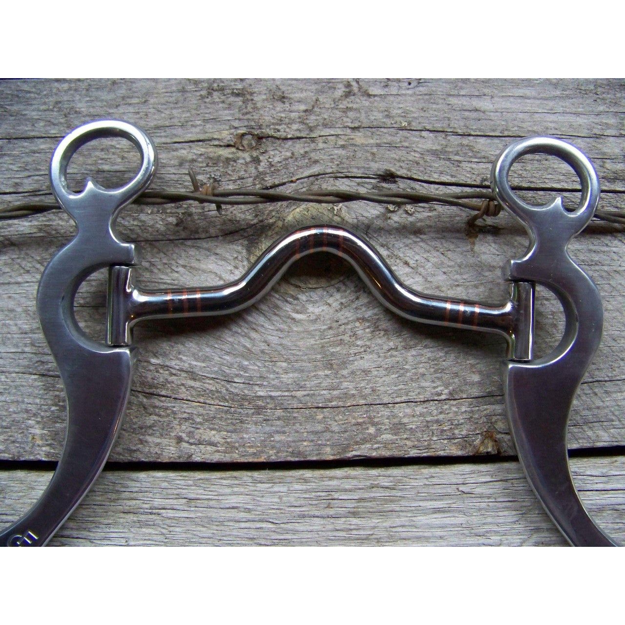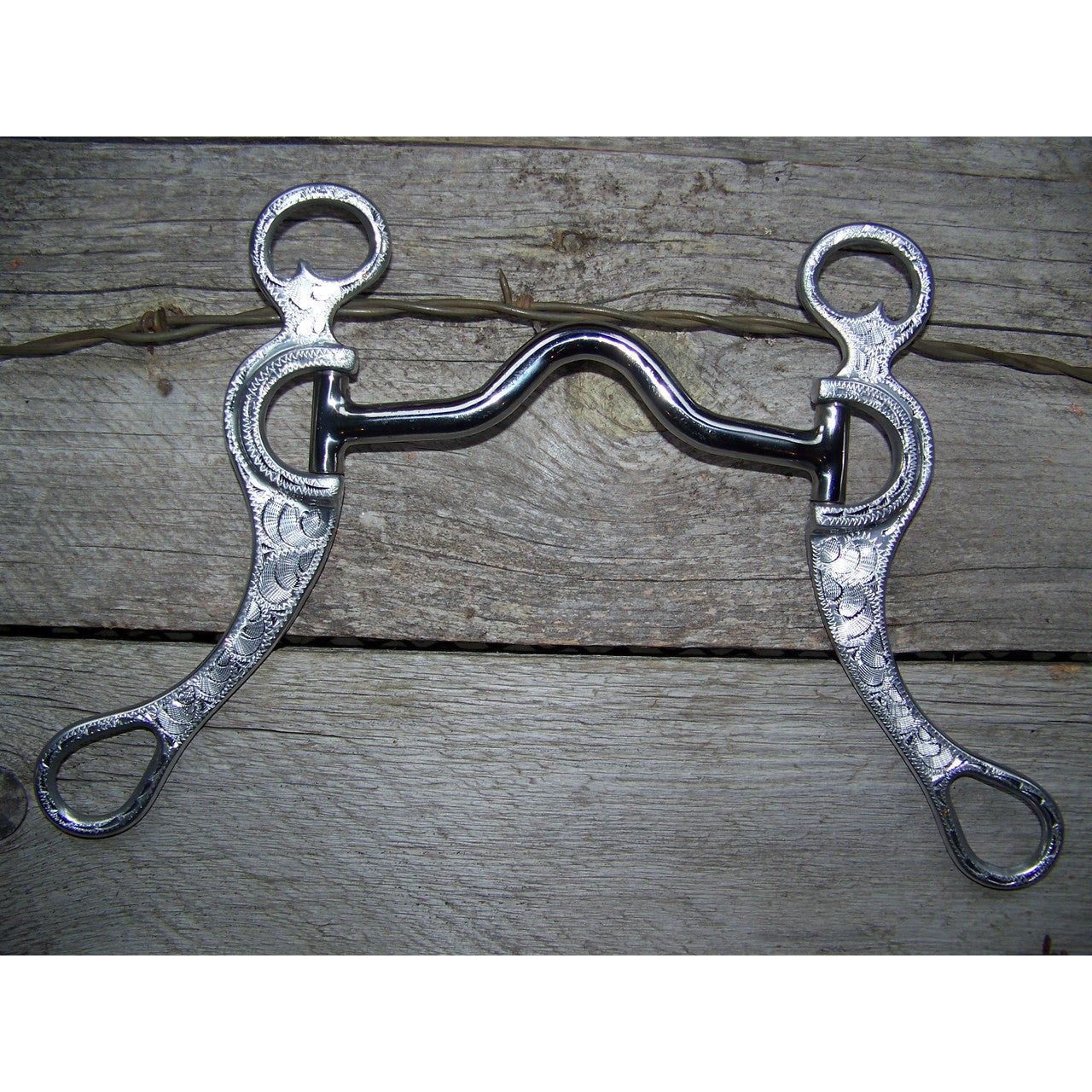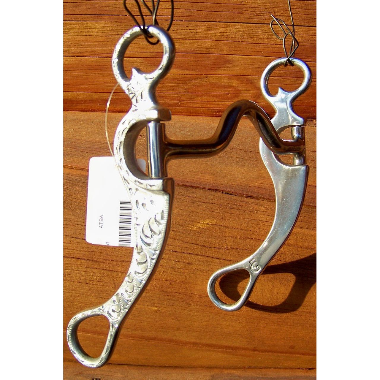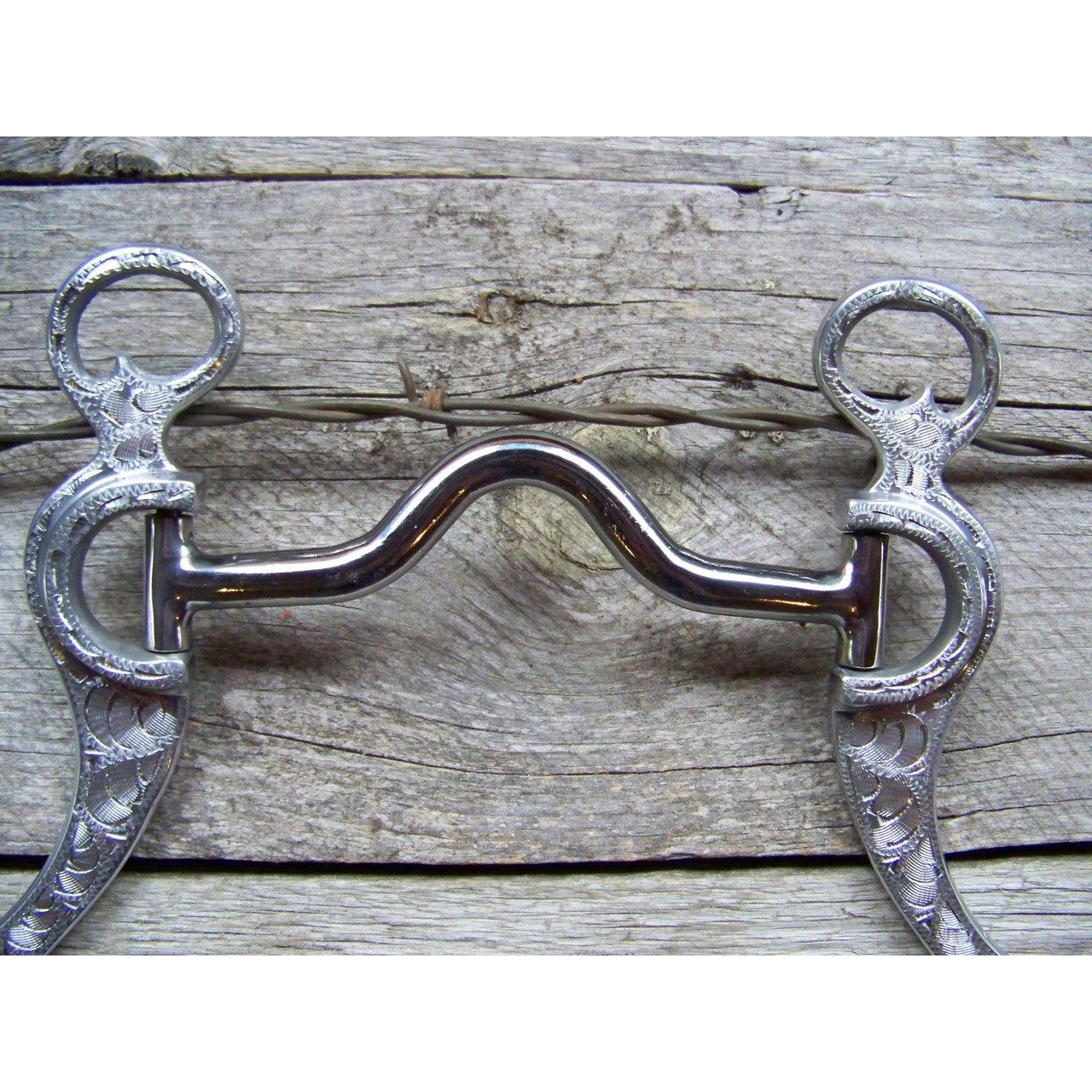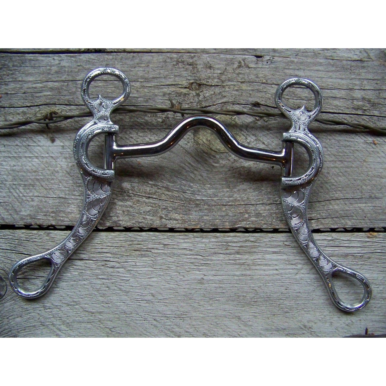 The Francois Collection aluminum medium port short cheek engraved with a 5" curved sweet iron mouthpiece and copper inaly. 7 1/4" aluminum engraved cheeks. Ideal for the intermediate horse. Light and comfortable. Good for any kind of rider's hands. Provides a moderate effect.