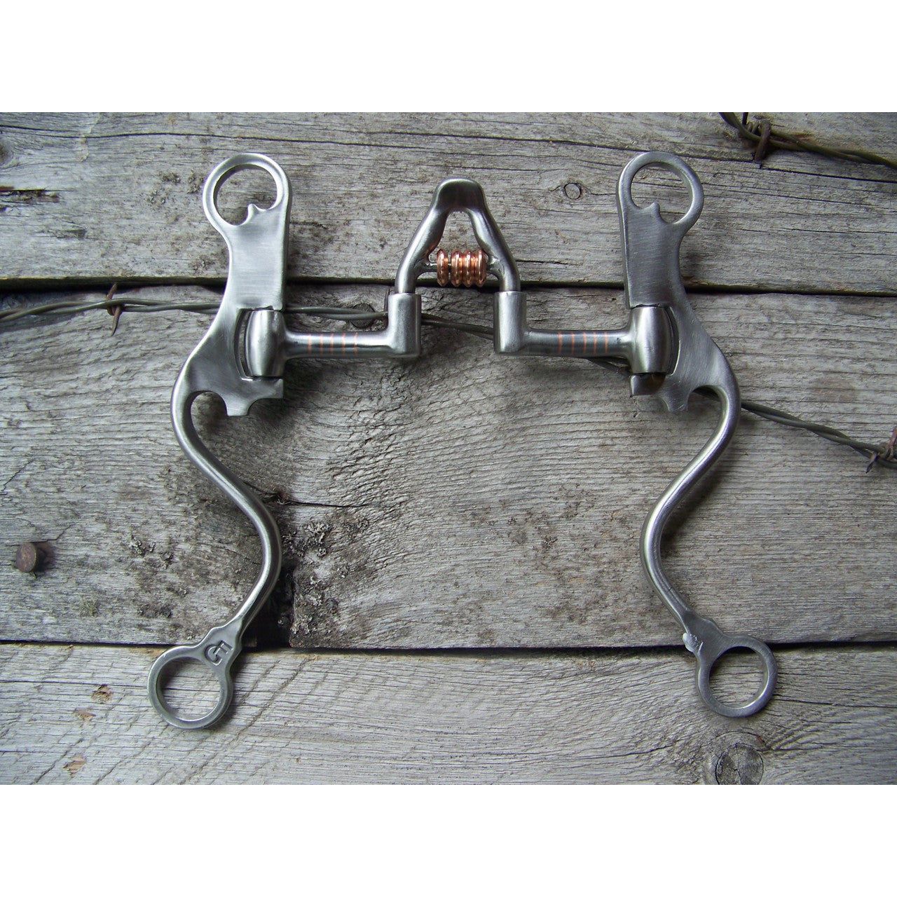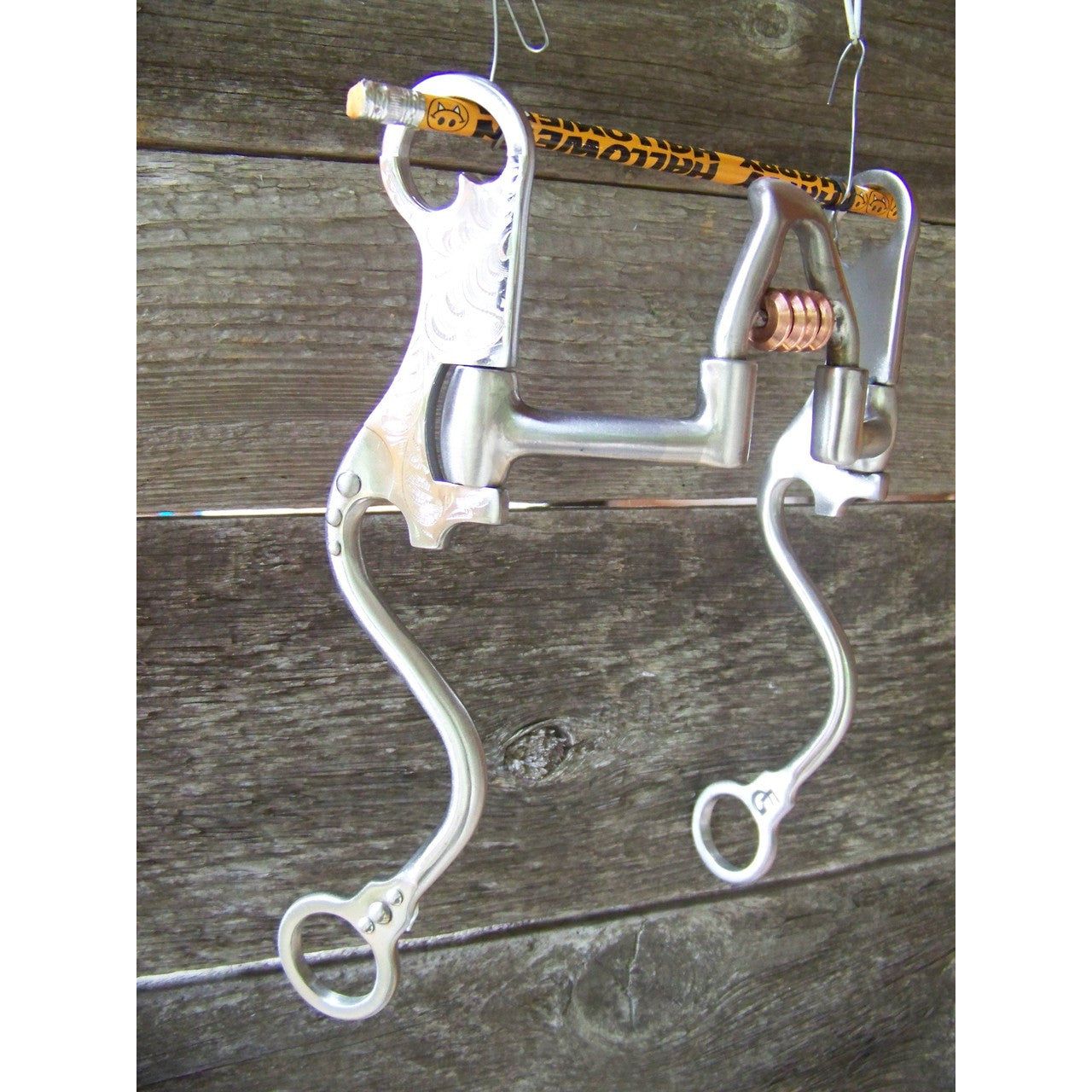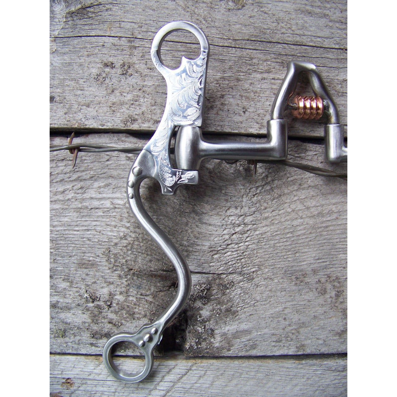 Francois Gauthier Collection - Brushed Cathedral Correctional Show Bit - 5 1/8" sweet iron correctional cathedral mouthpiece with copper rollers. 8 3/4" stainless steel brushed hi-purchase cheek with hand engraaved stainless steel trim and dots. The hi-purchase cheek design allows a better pressure distribution to the poll and a better balance. Helps to develop a lighter mouth. For experienced horses. (Moderate to Strong Effect).