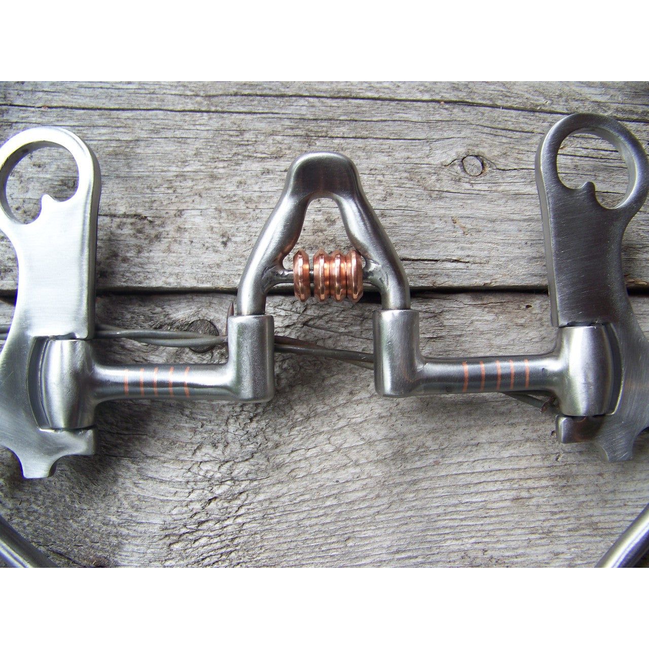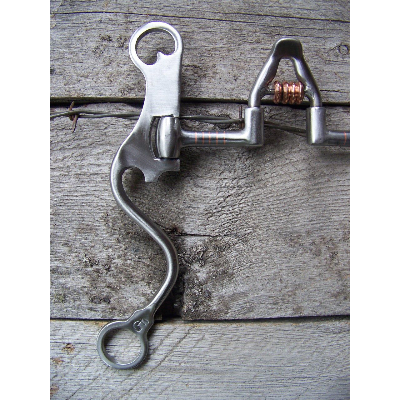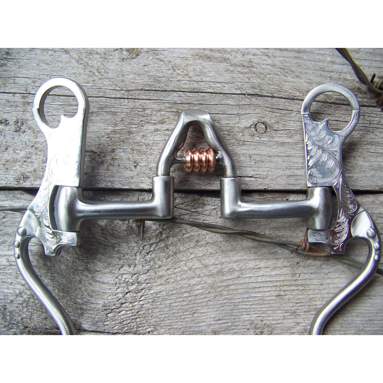 Francois Gauthier Collection - Brushed Cathedral Correctional Show Bit - 5 1/8" sweet iron correctional cathedral mouthpiece with copper rollers. 8 3/4" stainless steel brushed hi-purchase cheek with hand engraaved stainless steel trim and dots. The hi-purchase cheek design allows a better pressure distribution to the poll and a better balance. Helps to develop a lighter mouth. For experienced horses. (Moderate to Strong Effect).