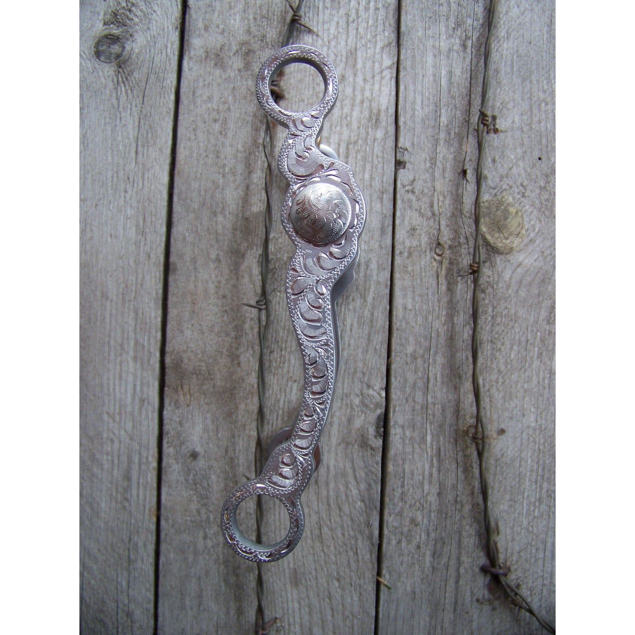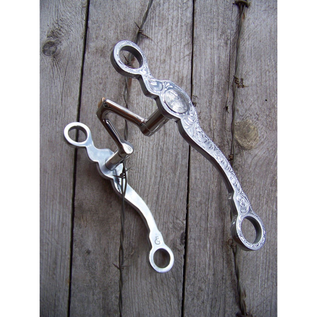 Francois Gauthier Collection - Precision spring ported bit with an aluminum finish. 2 1/2" spring ported mouth piece with flat top roller. Cheeks are 8 3/8" aluminum engraved cheeks with conchos.