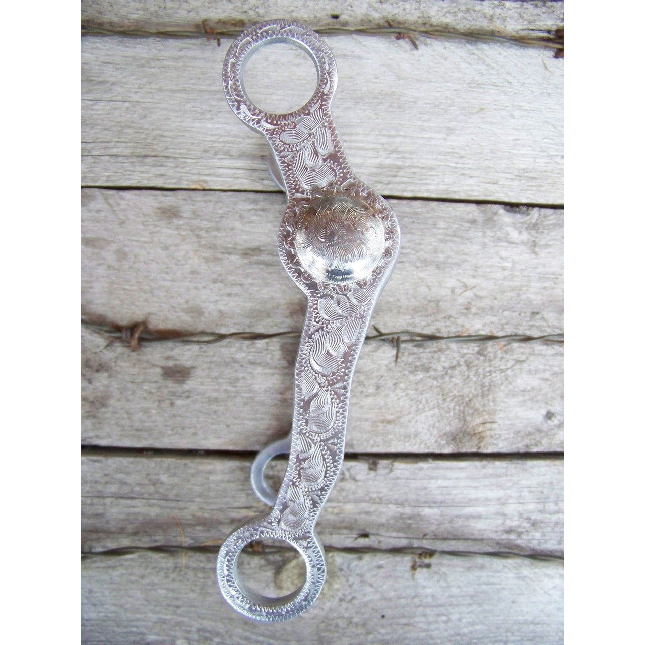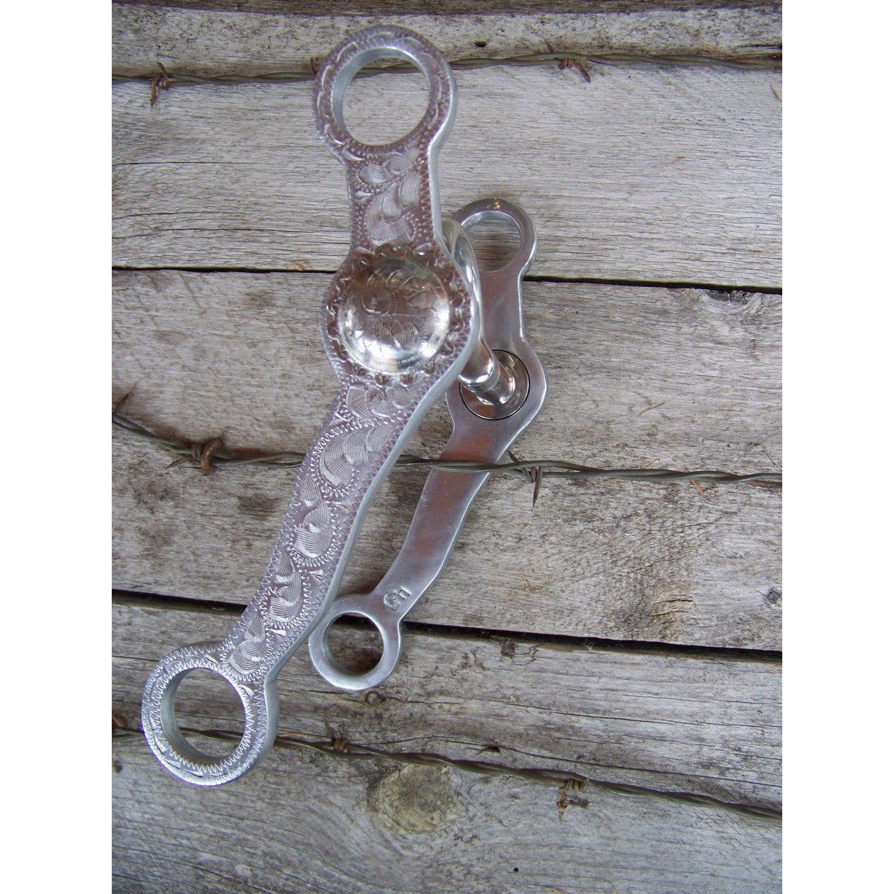Aluminum precision spring system bit by Francois Gauthier. 5" high port mouthpiece. 8 1/4" aluminum engraved cheeks with concho. Helops to collect and keep the horse's head in good position. For the advanced horse as it provides a strong effect.