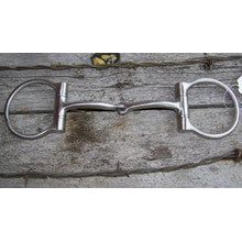 Stainless steel brushed D ring snaffle, the Francois Gauthier Collection, features a 5" curved mouth piece with copper inlaid. Great for the young horse with an average mouth. (Moderate effect)