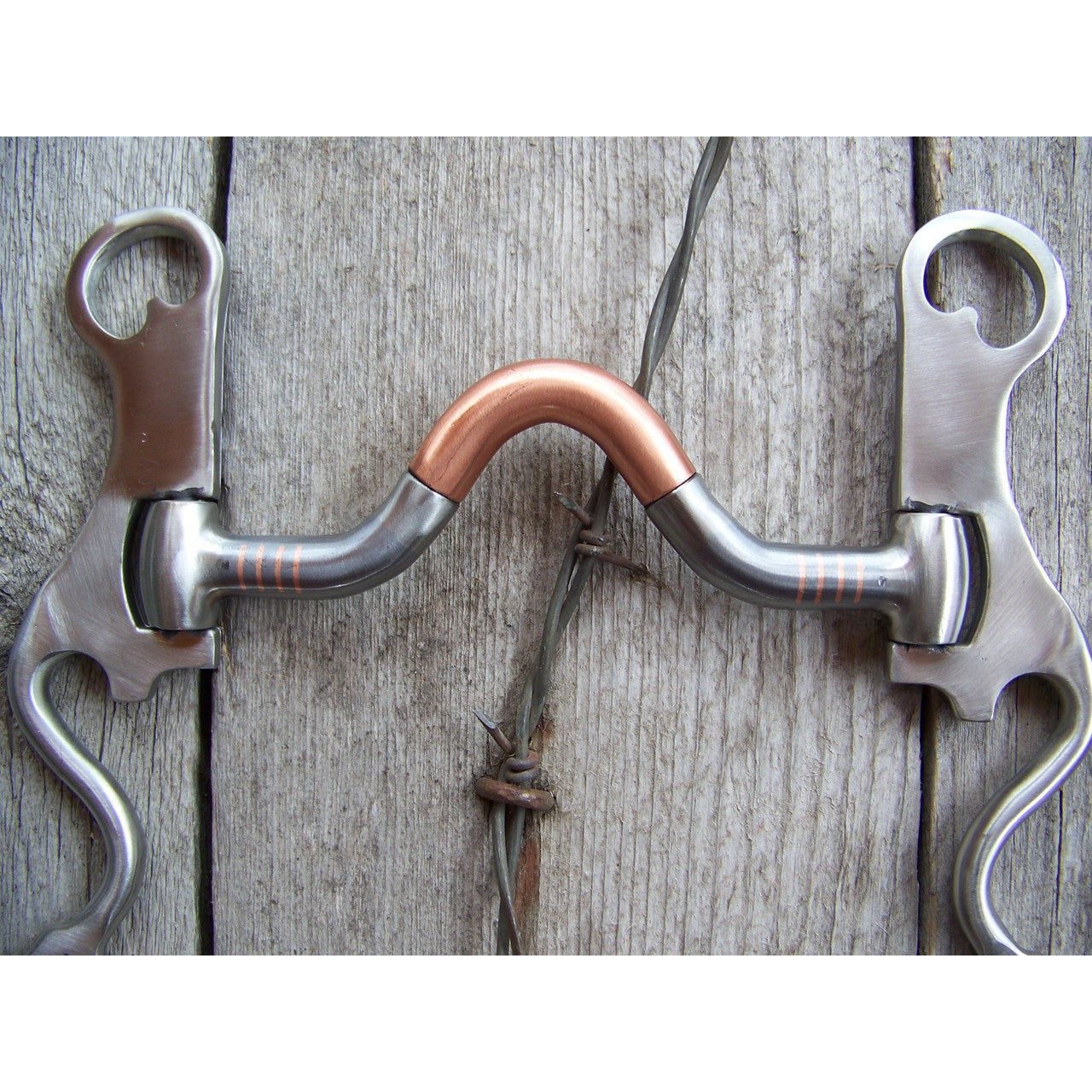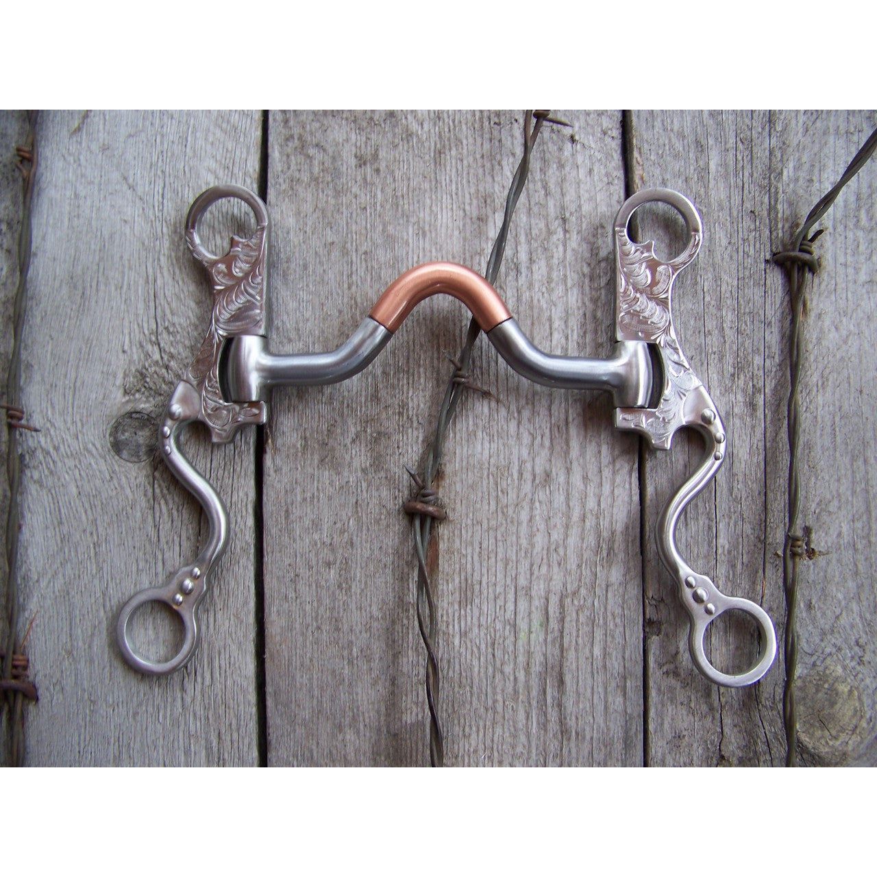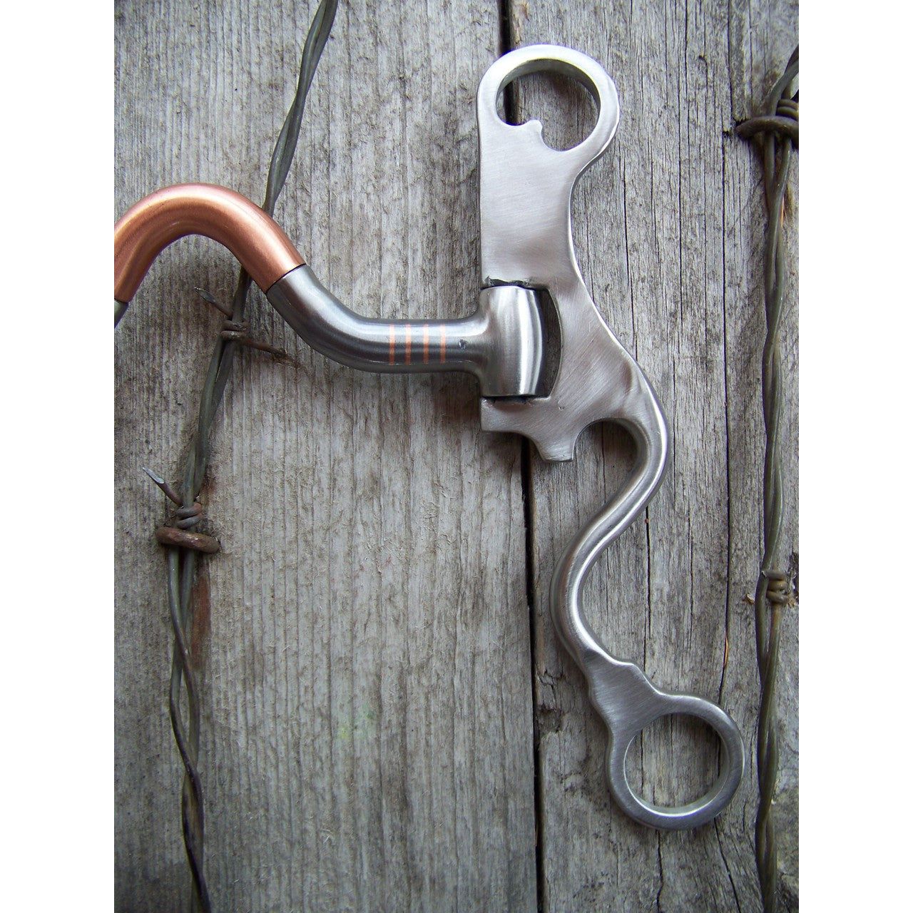 Francois Gauthier Collection - Stainless steel brushed/stainless steel bit. 5 1/8" sweet iron low square port comofrt mouth piece. Copper covered center link with copper inlay son bars. Unique right and left shoulder control. Cheek is 8 7/8" 2-tone stainless steel brushed with stainless steel cheek and stainless steel engraved trim. Heavy bit with good balance.
