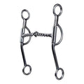 The two-piece twisted wire mouthpiece is slightly more aggressive than a smooth mouthpiece, which demands more response and respect from the horse.