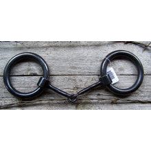 Black Satin steel bit. 5" snaffle mouth with 3" diameter rings. 5/8" thick heavy donut rings.