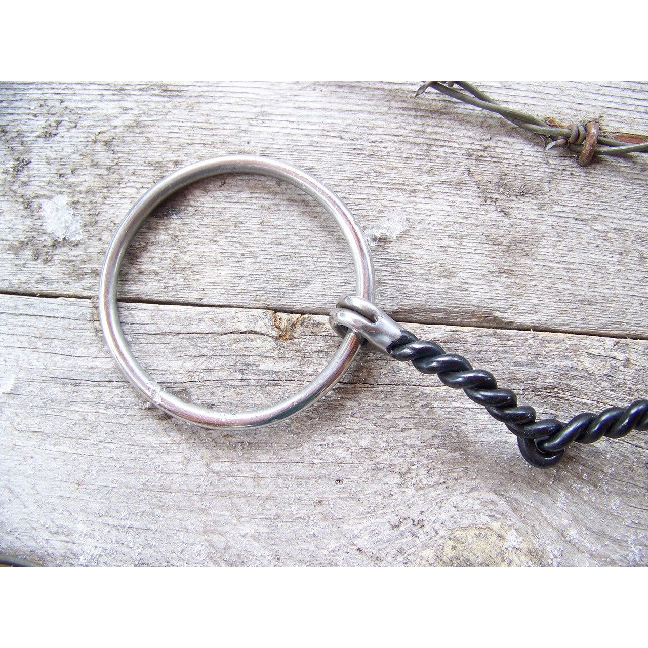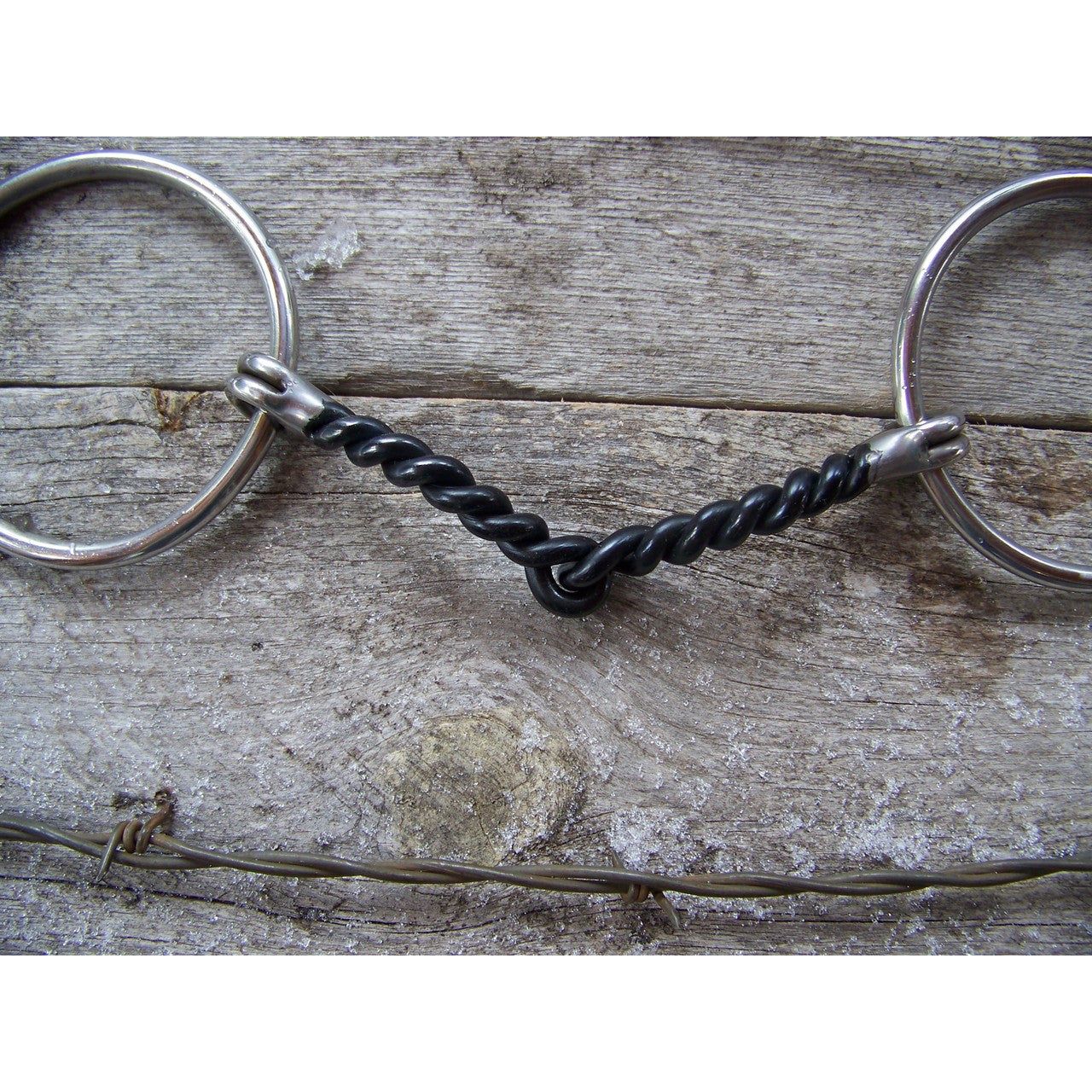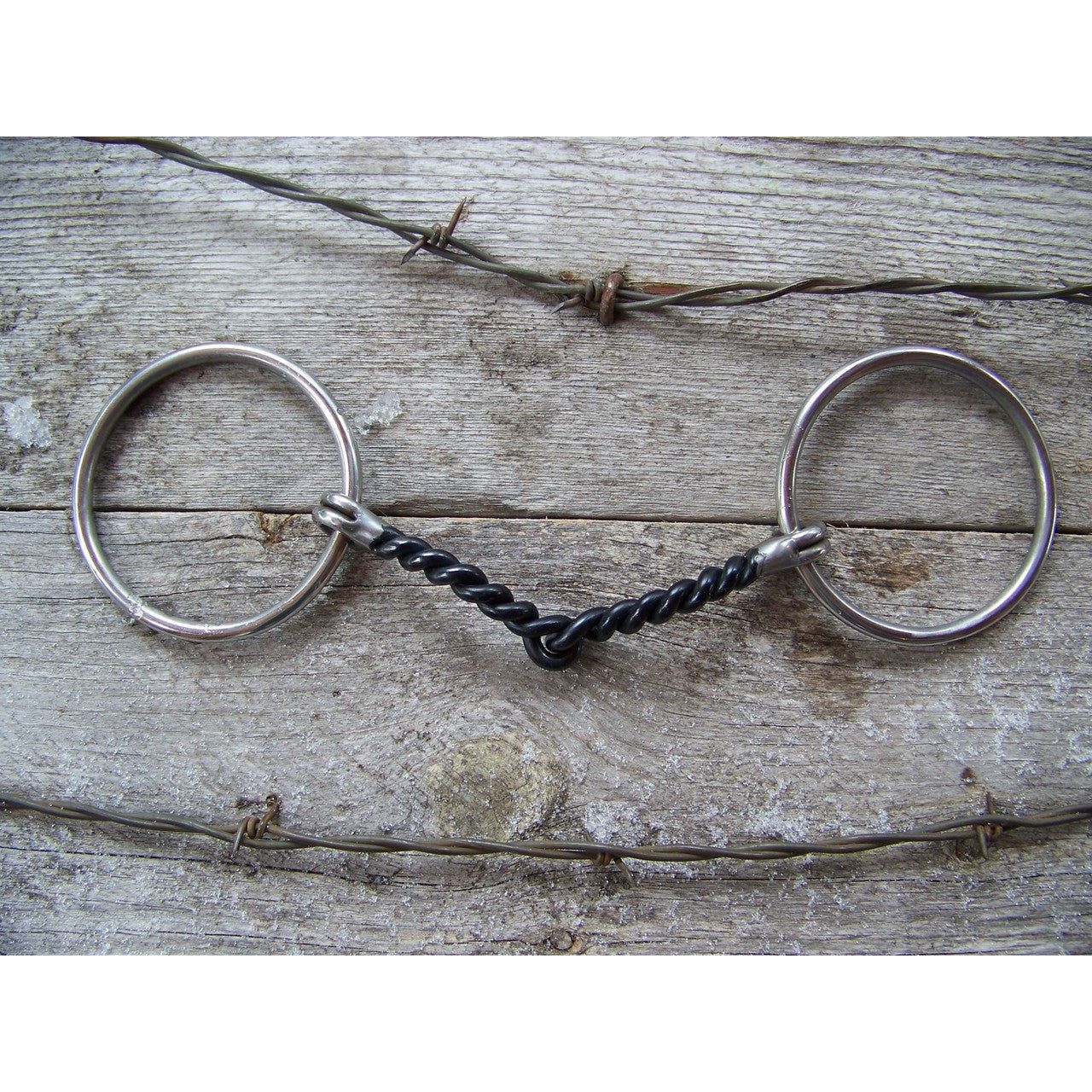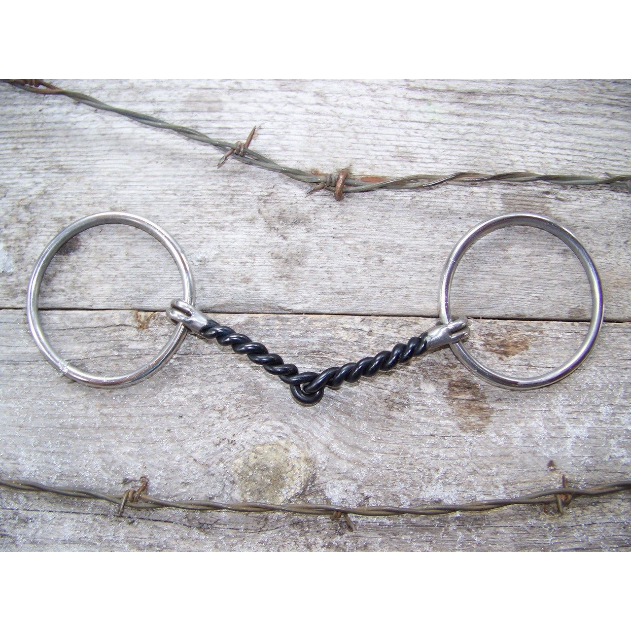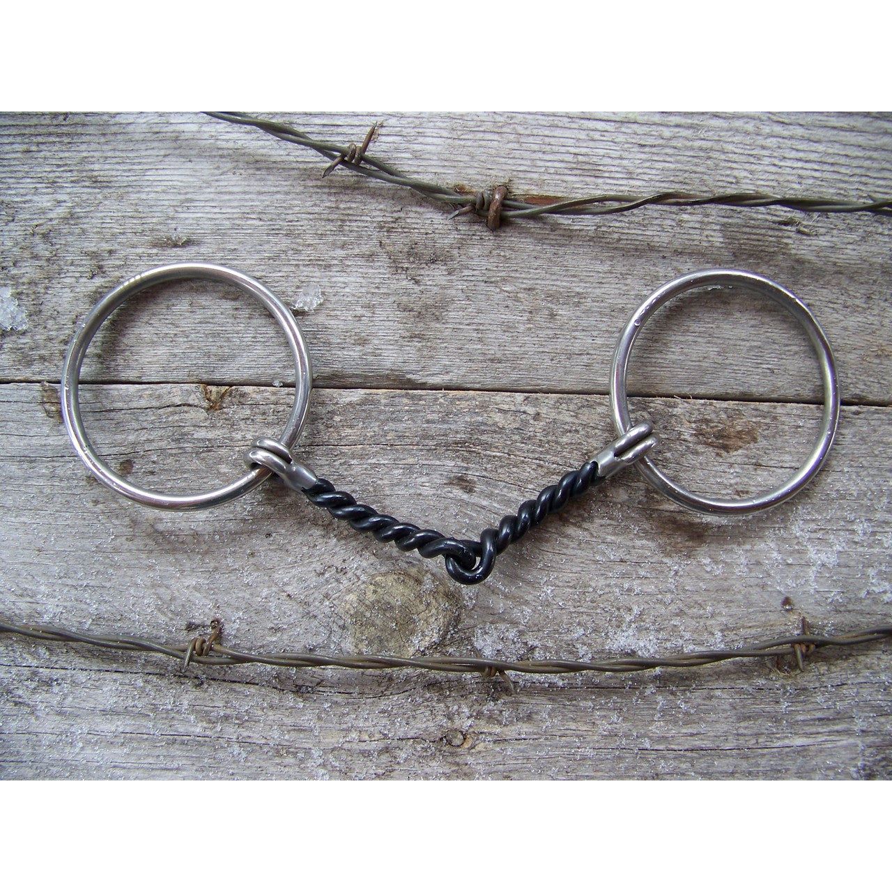 Twisted wire snaffle features 5 1/4" curved sweet ironn mouth. O-rings are 3" and are stainless steel.