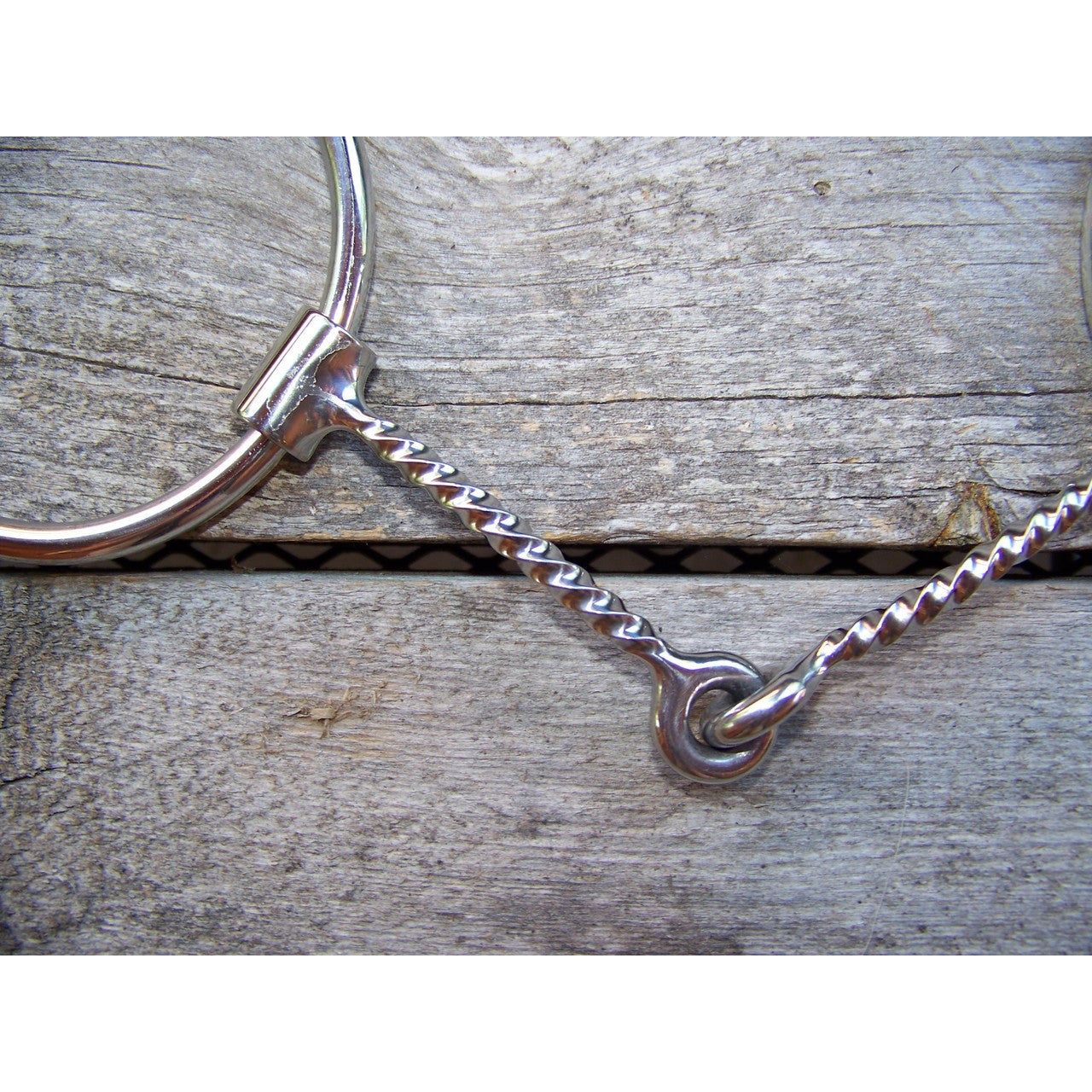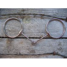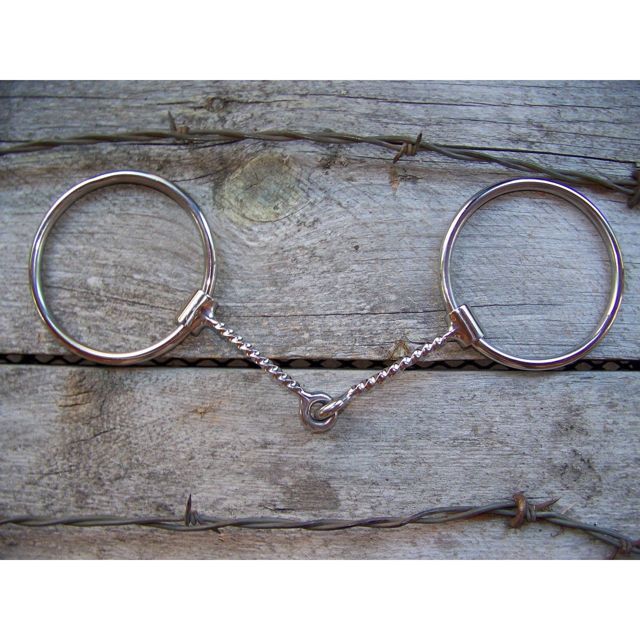 Stainles steel ring bit with 5" thin square twisted wire snaffle mouth. 2 3/4" diameter rings.