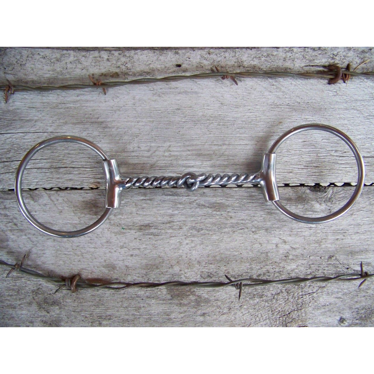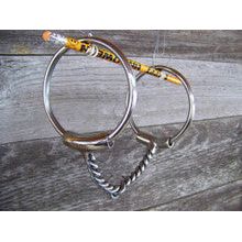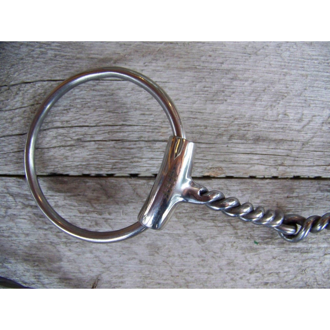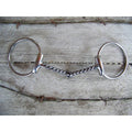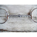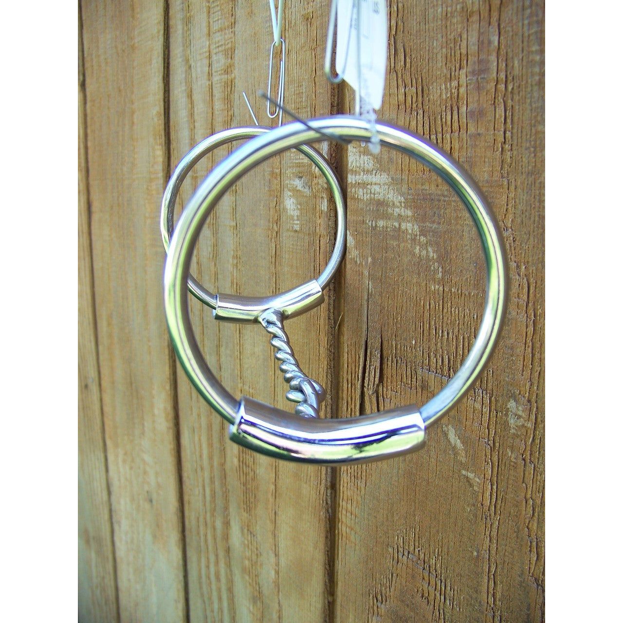 O-Ring snaffle with sleeves and twisted curved mouth. Mouth measures 5" across. Rings are 3".